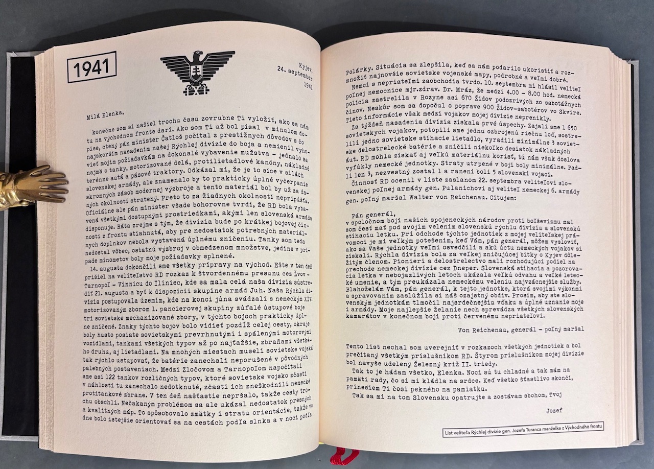 Netradične spracovaná kniha, ktorá čitateľa prevedie posledným storočím na Slovensku originálnou formou. Zachytáva obdobie rokov 1914 - 2014, pričom každému roku je priradený jeden text, ktorý vyjadruje atmosféru danej doby: list, telegram, báseň, správa, nariadenie, rozsudok, rozhovor, zápis v kronike, denníkový záznam. Každý exemplár knihy obsahuje tri zberateľské záložky – dobové artefakty, ktoré sú tiež súčasťou spomínania, náš exemplár obsahuje svadobnú fotografiu, lekársky recept a svätý obrázok.- Pekný stav