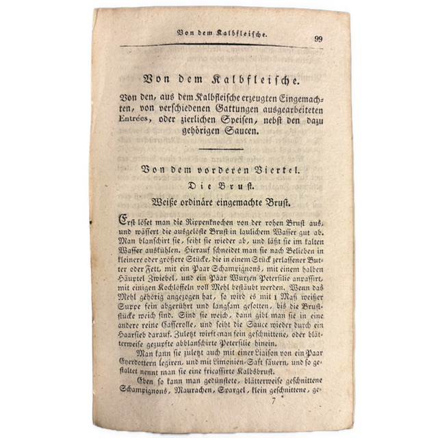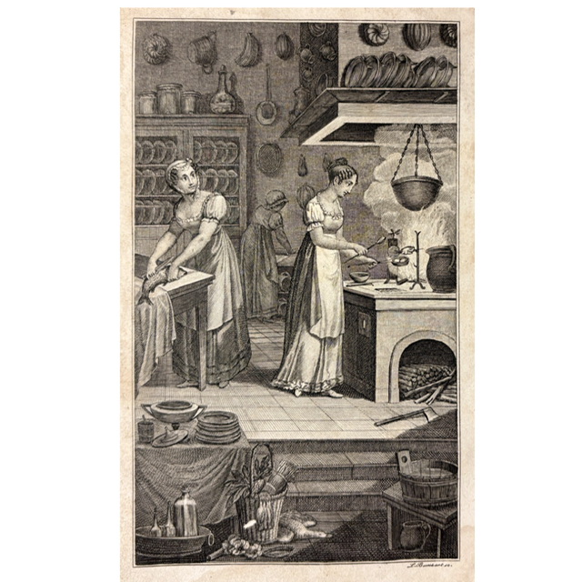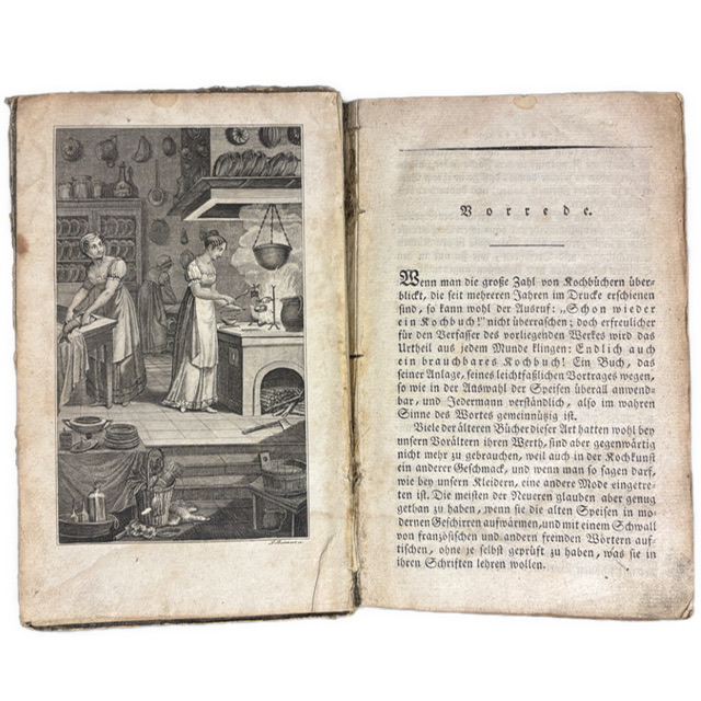 Reprezentatívna rakúska kuchárska kniha z obdobia neskorého klasicizmu a raného biedermeieru. Jedna z prvých rozsiahlych príručiek meštianskej a „panskej“ kuchyne, určená pre domácnosti, hostince i väčšie hospodárstva. Obsahuje stovky receptov, návodov na prípravu jedál, organizáciu stolovania a vedenie kuchyne – autentický obraz každodennej gastronómie rakúskej monarchie v prvej polovici 19. storočia. Publikáciu dopĺňa pôvabný dobový mediryt s výjavom kuchyne, dnes už nielen ilustrácia, ale aj samostatný grafický dokument svojej doby. Tento exemplár zaujme najmä svojím charakterom – zachovaná je pôvodná dobová väzba, nesúca prirodzené stopy používania a dvoch storočí života. Kniha tak nepôsobí ako „novodobý reprint“, ale ako skutočný historický predmet s atmosférou starých kuchýň a meštianskych domácností.- Vyhľadávaný a dnes už pomerne zriedkavý titul historickej gastronómie. Oporúčame zberateľom starých tlačí, milovníkom kuchárskych kníh, historikom každodennosti, gastronómom, alebo ako originálny darček pre niekoho, kto má slabosť pre starú monarchiu a jej kuchyňu.