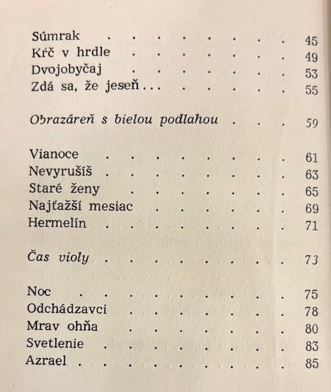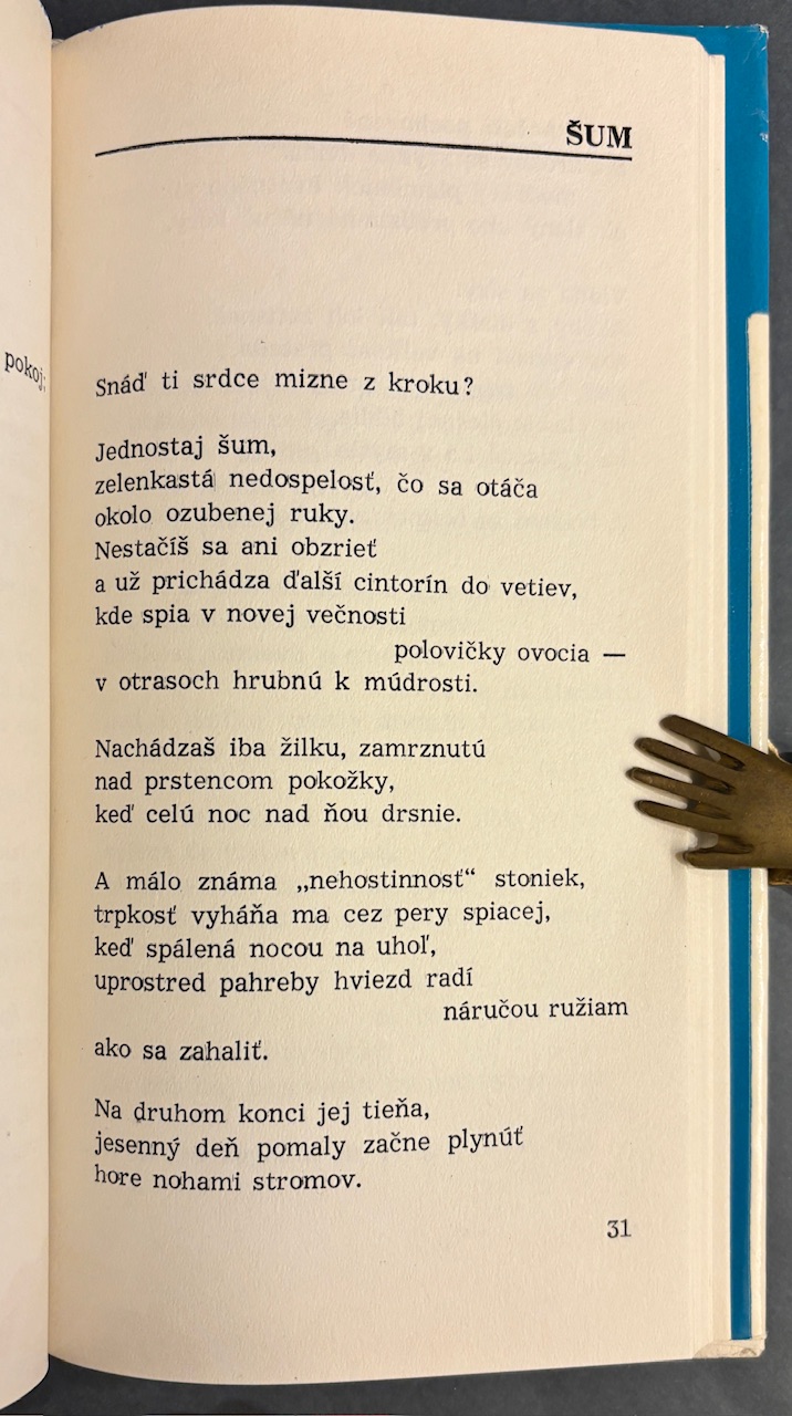 Zbierka básní, ktorá je jedným z básnikových prvých významných knižných diel po debute so zbierkou Sad zimných vtákov (1965).- Ed. Mladá tvorba, zv. 27.- 1. vydanie.- Obálka a frontispice Ján Gajdoš.- Horný okraj obálky len minimálne ošúchaný, inak pekný stav