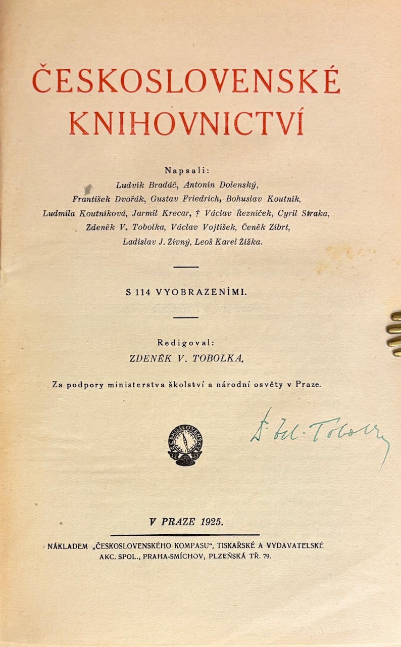 Zdeněk Tobolka České knihovnictví. O knihách a knihovnách 30,00 € Praha, 1925 Vydavateľstvo Československý kompas Podpis Zdeněk V. Tobolka Náučná literatúra České knihovnictví. O knihách a knihovnách