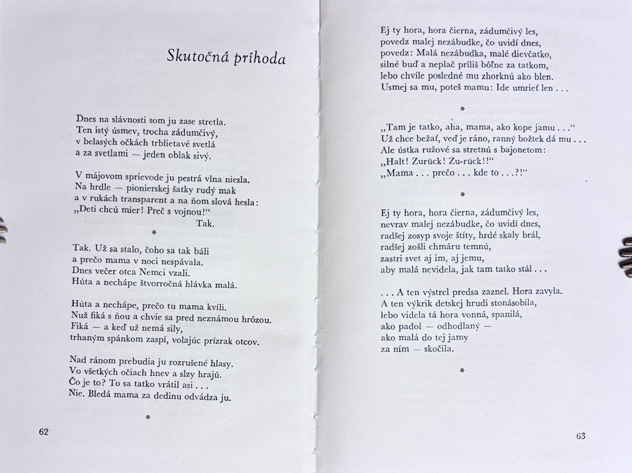 1. vydanie zbierky básní s vlastnoručným venovaním a podpisom autorky na titulnom liste.- Obálka a frontispice Jozef Študík.- Papierová obálka na hornom okraji odzobaná, jemne opravovaná, inak dobrý stav