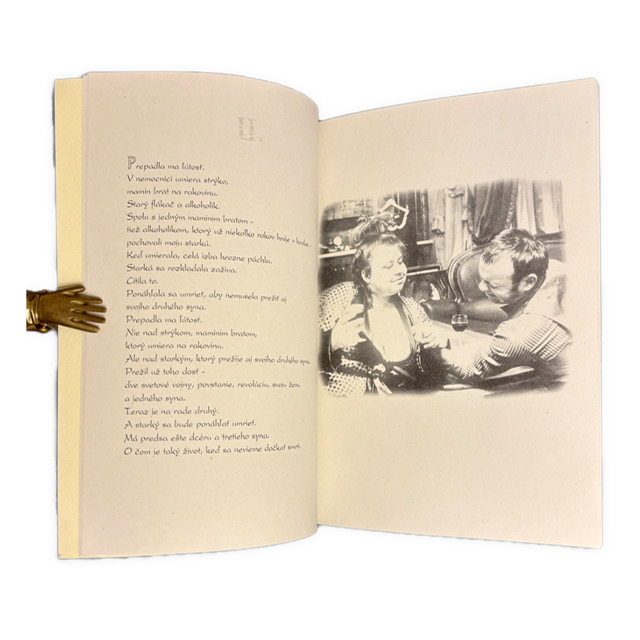 Silná a intímna knižná spolupráca slovenského autora Karol Lovaš a fotografky Sára Saudková, v ktorej sa stretáva krátka próza s expresívnou čiernobielou fotografiou.