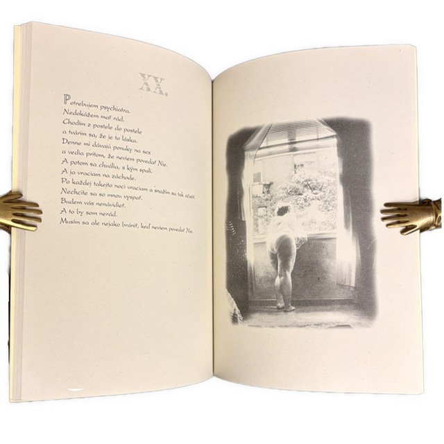 Texty zachytávajú krehké momenty ľudskej existencie – samotu, zraniteľnosť, túžbu aj vnútorné zápasy človeka. Fotografie tieto témy dopĺňajú sugestívnou obrazovou rovinu a vytvárajú spolu s textom komorný, miestami až existenciálny portrét človeka v jeho najosobnejších chvíľach.