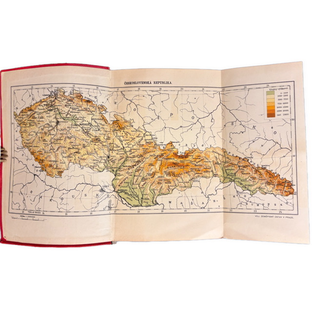 1. vydanie.- Titulný list s malou exlibris pečiatkou a doborvým podpisom.- Text prvých strán miestami jemne podčiarkovaný.- Pôvodná vydavateľská väzba, polotuhá kartónová, potiahnutá červeným plátnom so zlatotlačou a štátnym znakom na prednej doske. Jemne ošúchaná, prednej doske chýba kúsok plátna na spodnej hrane, drobné tmavšie škvrny na plátne a menšie natrhnutie plátna pri päte chrbta. Ide o typické oslabenie materiálu pri tomto type väzby. Blok je pevný, kompletný, rozkladacia mapa pekne čistá