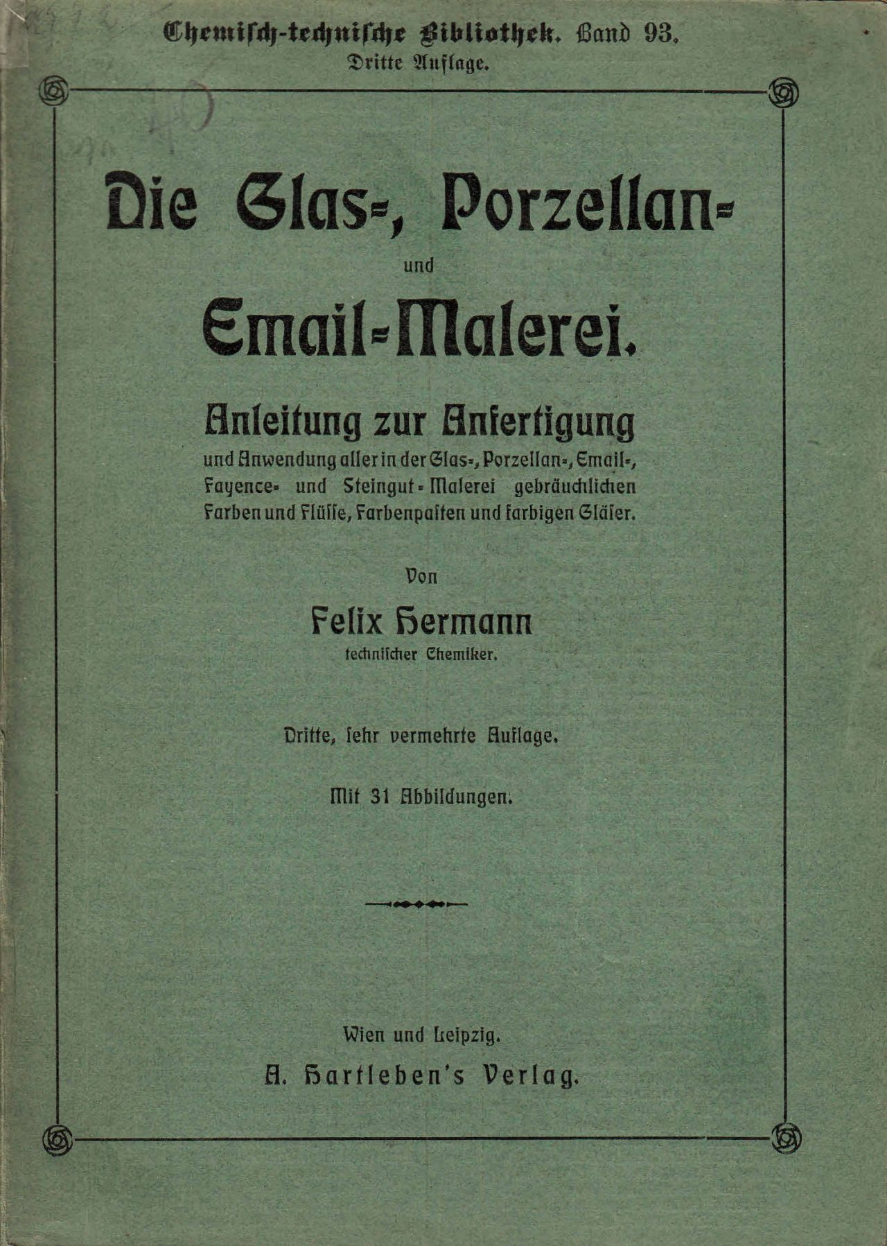 Anleitung zur Anfertigung und Anwendung aller in der Glas-, Porzellan-, Email-, Fayence- und Steingut-Malerei gebräuchlichen Farben unf Flüsse, Farbenpasten und farbigen Gläser.- Chemisch-technische Bibliothek, zv. 93.- 3. rozšírné vydanie s 31 obrázkami v texte.- Veľmi pekný stav