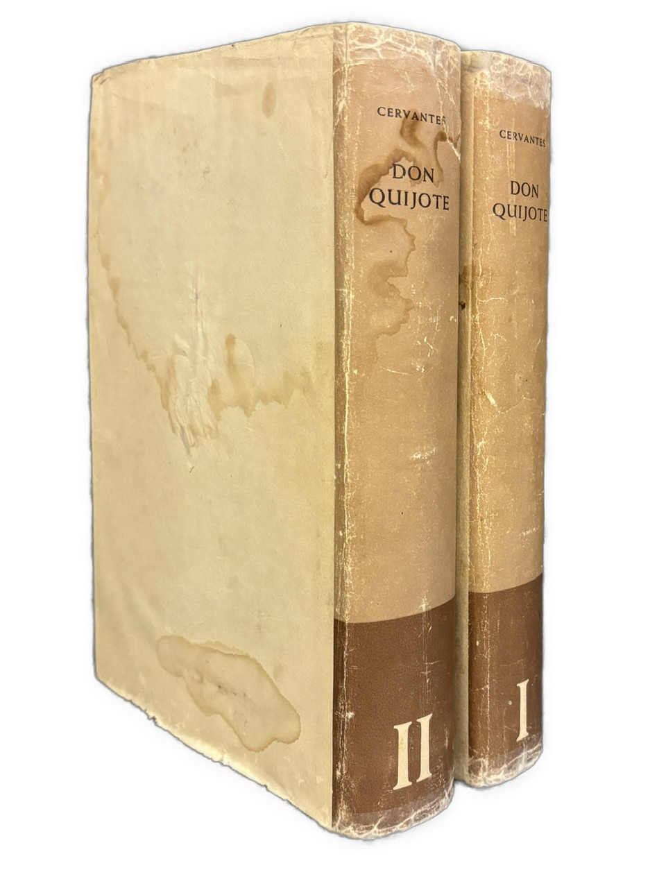 2. slovenské vydanie s ilustráciami Gustava Dorého.- Edícia Výber, zv. 1.-2. Vrcholné dielo španielskeho klasika na rozhraní 16. a 17. storočia.- Preklad a poznámky Jozef Felix, verše prebásnil Vojtech Mihálik.- Ttillný list s exlibris pečiatkou a malým podpisom, rohy trochu ošúchané, obálka ošúchaná, zadná strana a chrbát obálky druhého dielu s vlhkostnými škrvnami