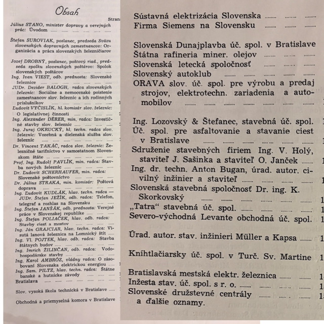 Kniha obsahuje odborné príspevky významných predstaviteľov železníc, poštových služieb, stavebníctva a priemyslu, doplnené o bohatý obrazový materiál – mosty, železnice, verejné budovy či urbanistické celky. Zaujímavou súčasťou je aj rozsiahly blok dobovej reklamy, často ilustrovaný architektonickými alebo produktovými fotografiami, a dnes predstavuje autentický vizuálny dokument hospodárskeho života