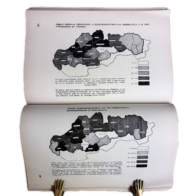 Text je bohato doplnený dobovými fotografiami, štatistikami a grafickými prehľadmi. Výrazným prvkom je jedna väčšia rozkladacia mapa Slovenska, doplnená o viacero menších tematických máp a schém, ktoré dokumentujú stav elektrifikácie, rozvodných sietí a spotreby energie v jednotlivých regiónoch.