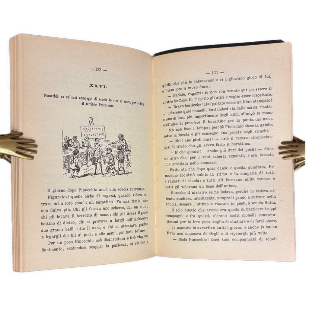 This edition preserves the authentic typography and visual character of the earliest printed form of Pinocchio. Mazzanti’s illustrations represent the very first visual interpretation of the character, created decades before the famous Disney adaptation.