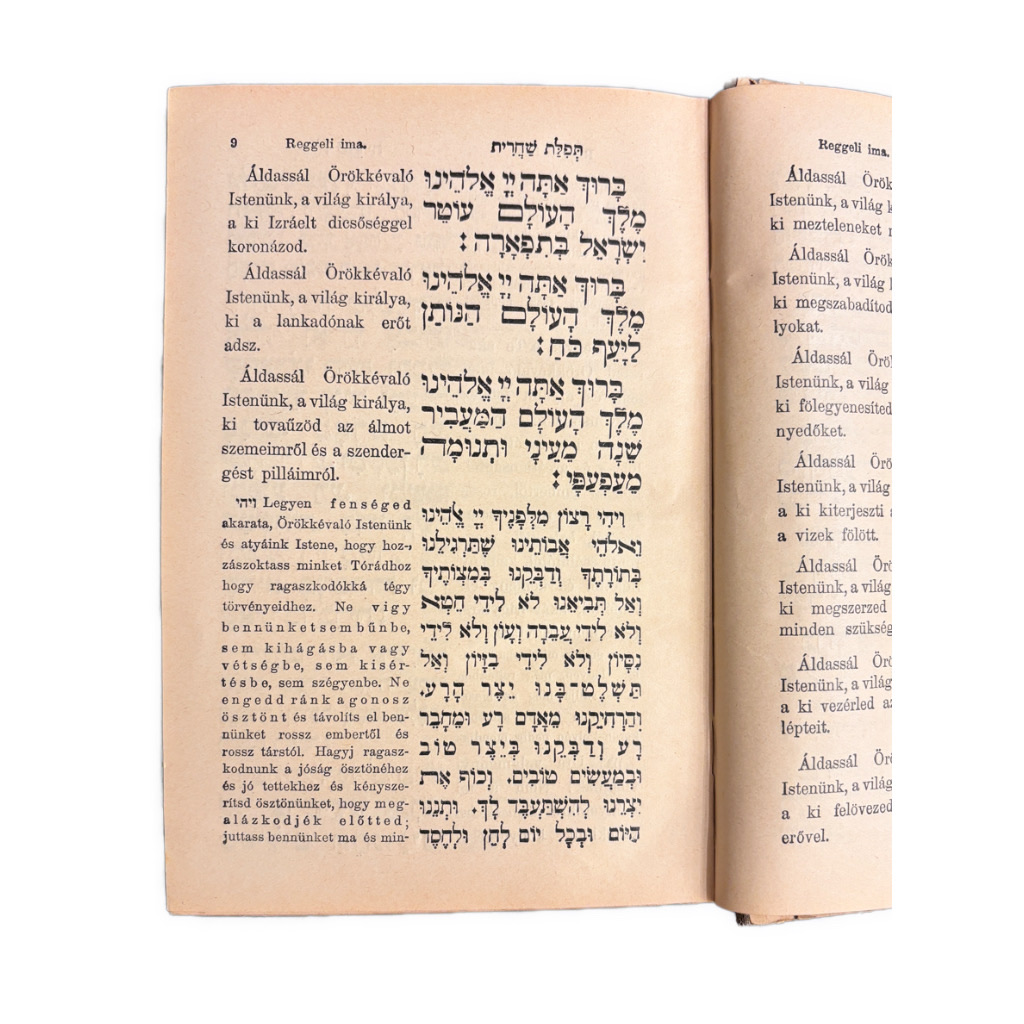 ספר תפילה דו־לשוני בעברית ובהונגרית, מיועד לשימוש ביתי ולימודי בקהילה היהודית בהונגריה. נדפס בבודפשט בשנות ה־30 של המאה ה־20 ומשקף את חיי הדת של התקופה.