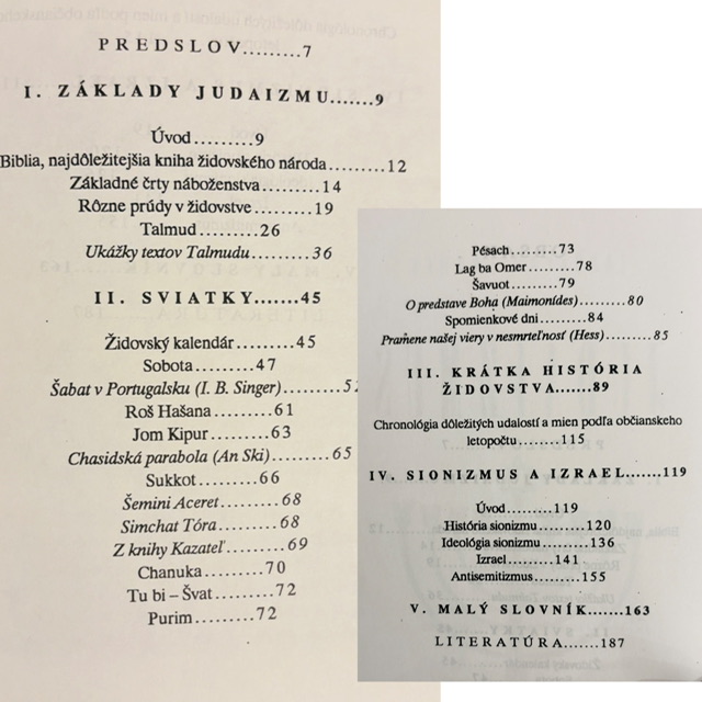 Základné informácie o židovskom náboženstve, kultúre a dejinách židovského národa. Kniha vznikla na začiatku 90. rokov, v období rastúceho záujmu o židovskú históriu a kultúru v strednej Európe po páde komunistického režimu.