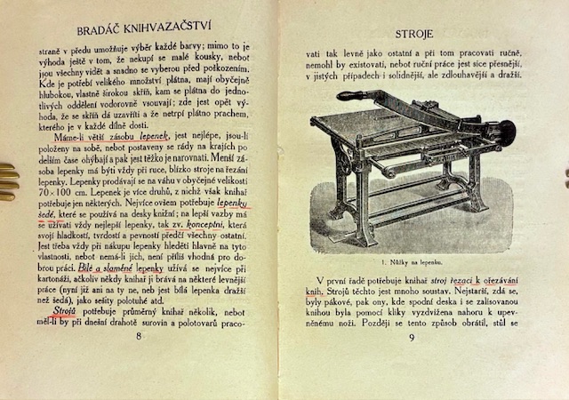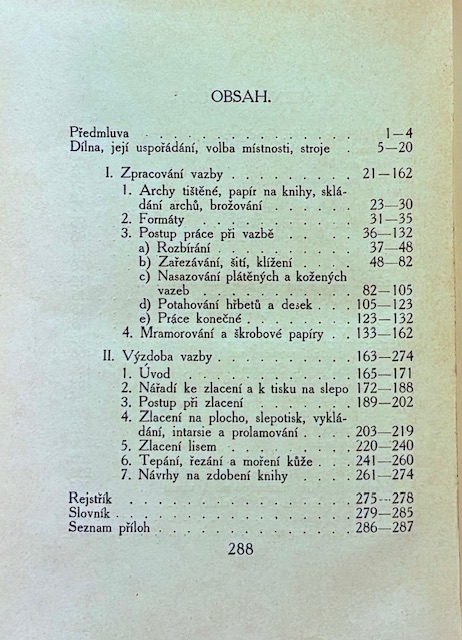 Publikácia patrí do významnej edície Umění a řemesla, ktorú redigoval historik umenia Dr. Zdeněk Wirth. Tento zväzok napísal L. Bradáč a venuje sa kníhviazačstvu – remeslu aj umeleckému spracovaniu kníh. Obsahuje bohatú obrazovú prílohu, ktorá dokumentuje vývoj knižných väzieb, techniky zdobenia a umelecké smery knižnej kultúry na prelome 19. a 20. storočia. Ide nielen odbornú príručku pre kníhviazačov a bibliografov, ale aj historický prehľad o estetike a technológii viazania kníh.- Ed. Umění a řemesla, zv. 7.- 176 ILU a 27 obrazových príloh.- Príležitostne text podčiarknutý červenou ceruzkou.- Väzba po okrajoch trochu ošúchaná, malá pečiatka na predsádke, inak dobrý stav