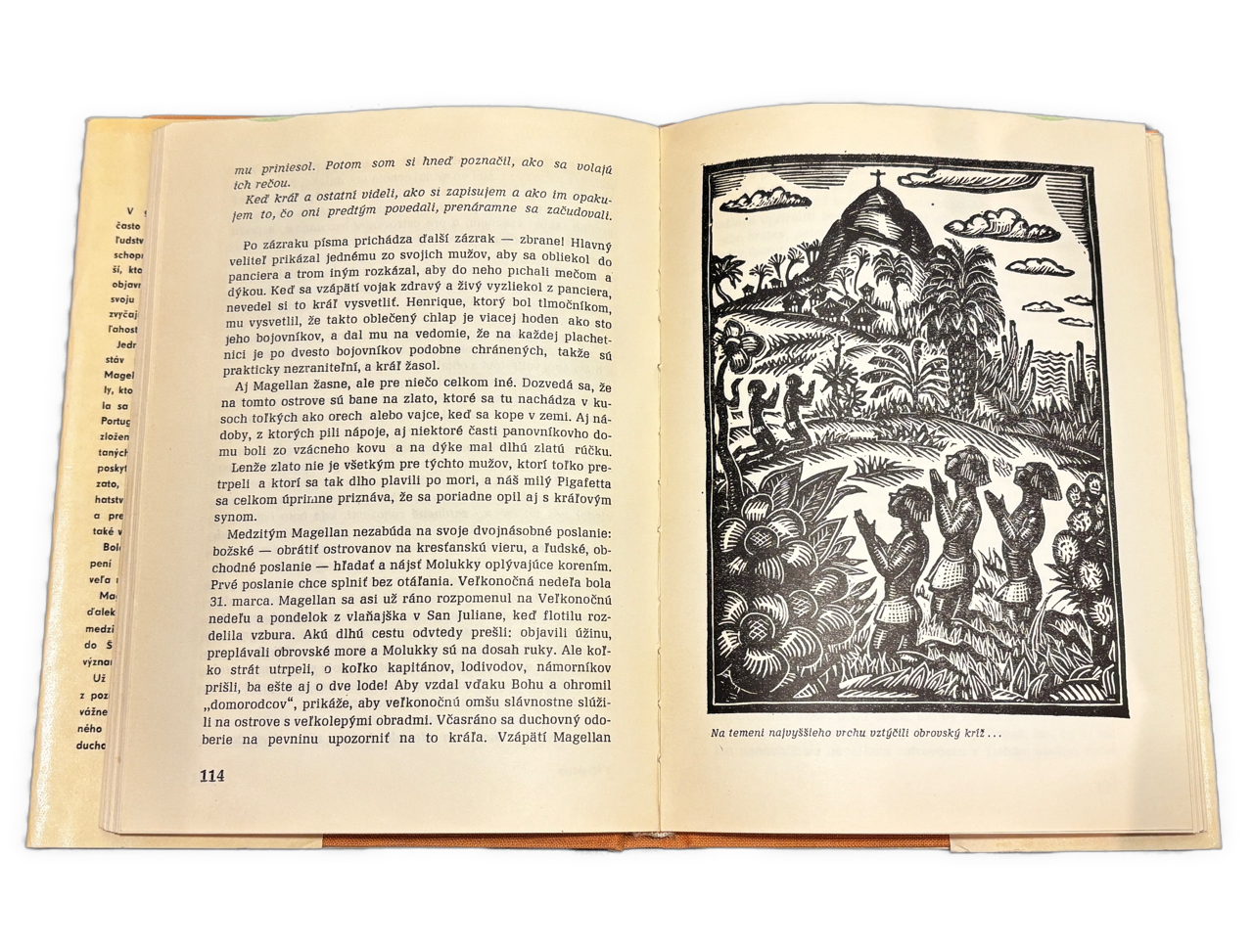 Mimoriadne atraktívny titul z oblasti dejín veľkých geografických objavov, spracovaný s vysokou literárnou aj výtvarnou úrovňou. L. Peillard ponúka čitateľsky pôsobivý a kultivovaný výklad Magellanovej výpravy – jednej z kľúčových udalostí svetových dejín. ČB ilustrácie boli prebraté z francúzskeho originálu.- Papierová obálka na hornom okraji len jemne odzobaný, inak dobrý stav