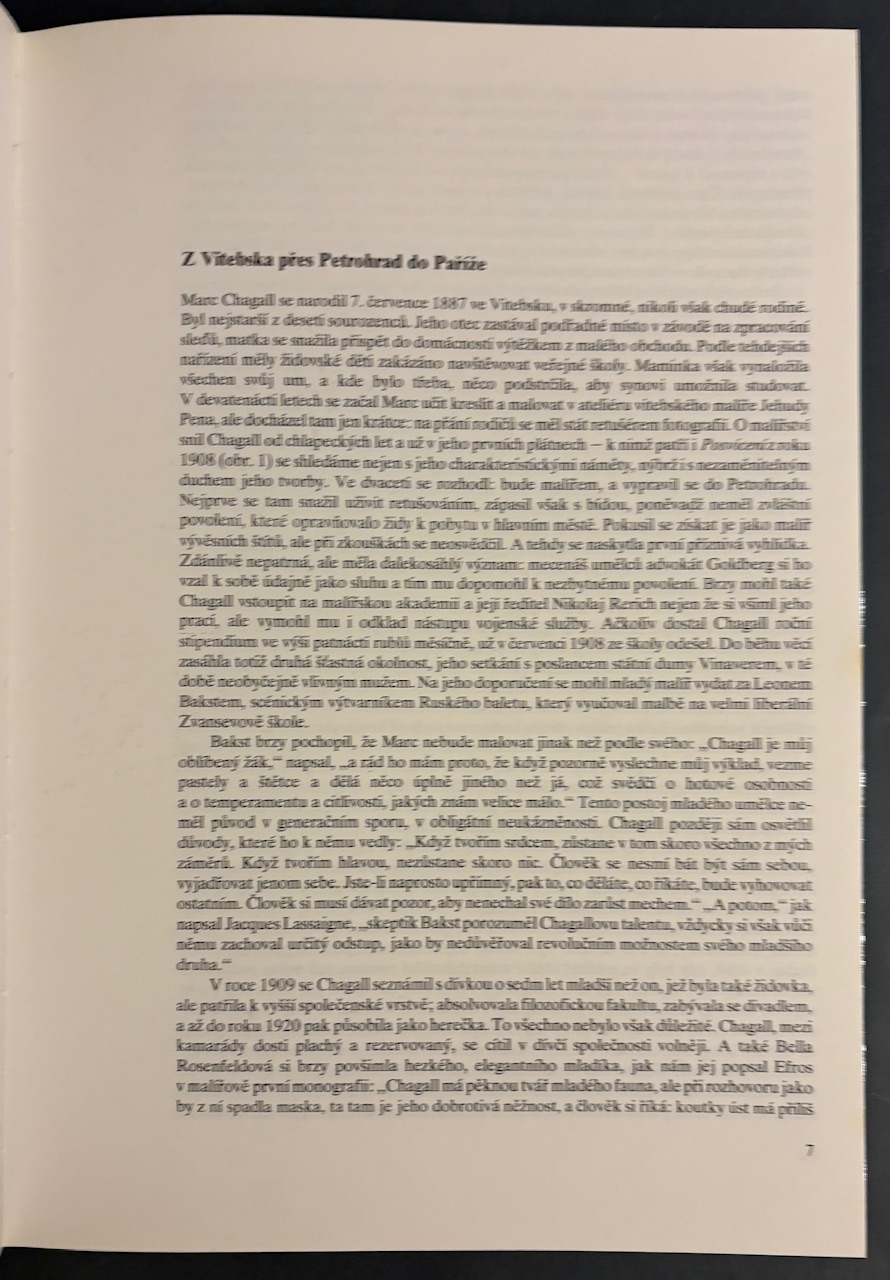 Reprezentatívna monografia venovaná jednému z najpoetickejších a najrozpoznateľnejších umelcov 20. storočia. Publikácia ponúka ucelený pohľad na život a dielo Marca Chagalla, maliara snov, pamäti, lásky a duchovných symbolov, ktorého tvorba spája moderné umenie s tradíciou, folklórom a osobnou mytológiou. Kniha sleduje Chagallovu umeleckú cestu od raných rokov cez parížske obdobie až po zrelé dielo, v ktorom sa prelína farba, fantázia, biblické motívy, ľudská blízkosť a nadčasová obraznosť. Elegantná grafická úprava a kvalitná tlač robia z tejto knihy plnohodnotnú galerijnú publikáciu, vhodnú nielen na čítanie, ale aj ako estetický objekt do knižnice. Vhodné ako dar pre milovníkov výtvarného umenia, moderny a poézie v obraze.- 1. vydanie.- Štúdia Jan M. Tomeš. 92 strán zväčša farebných a celostranových reprodukcií.- Pekný stav