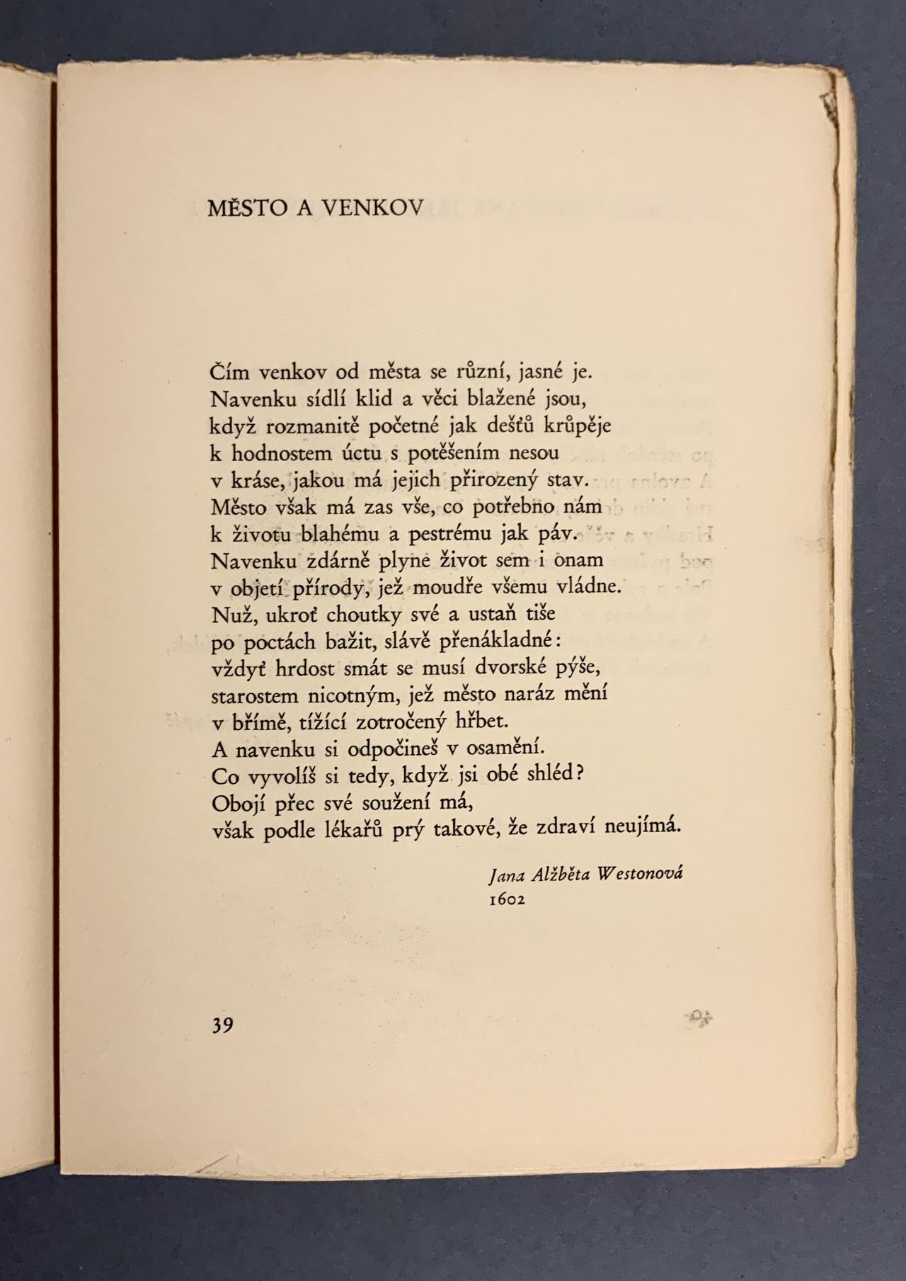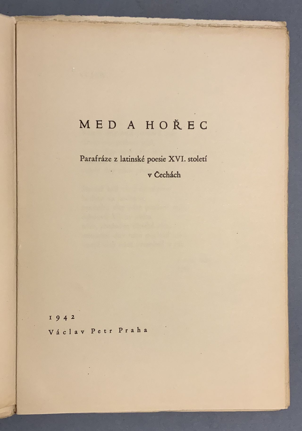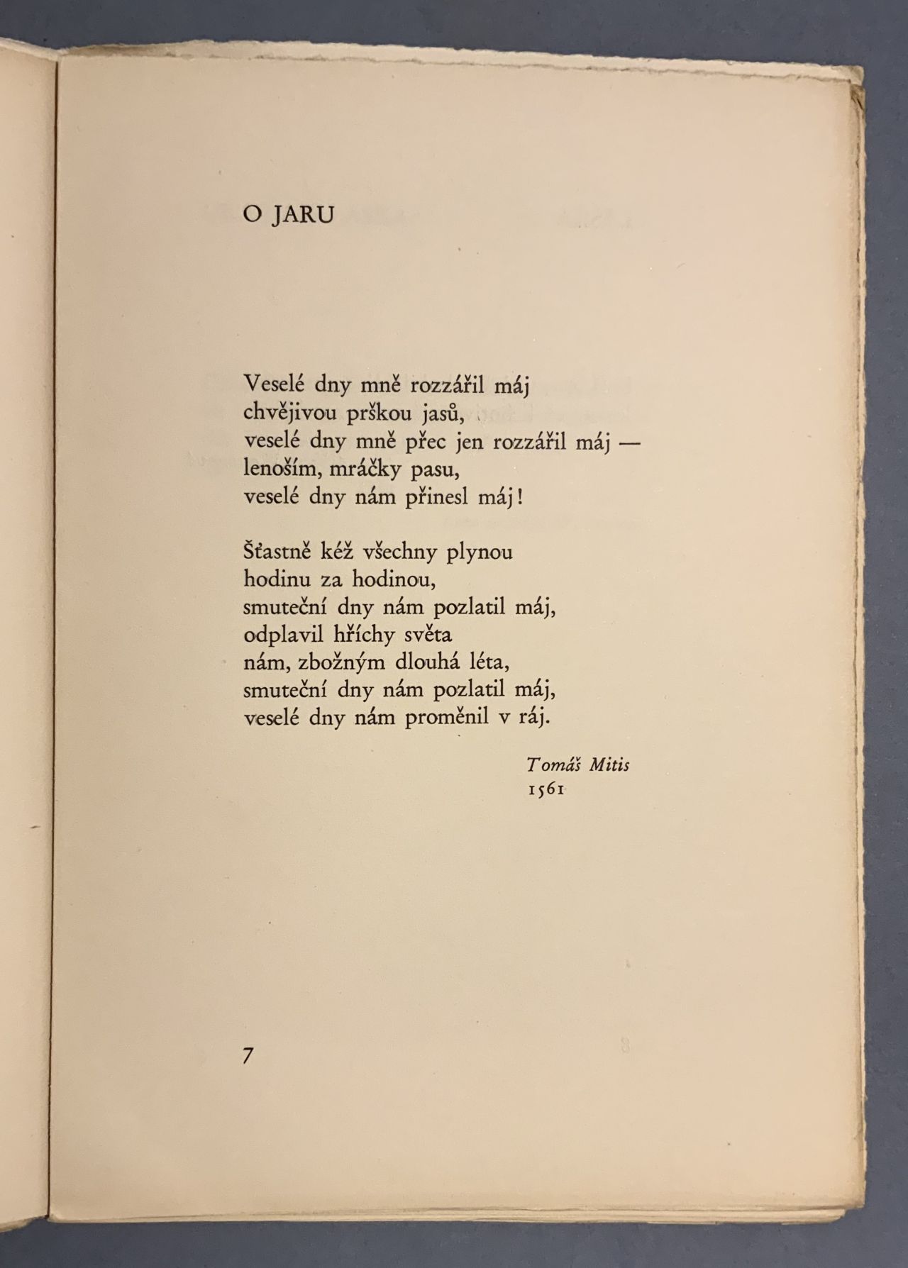 Parafráze Kamila Bednáře z latinskej poézie 16. stro v Čechách.- Preklad a štúdia Věra Studená.- Obálka Jaroslav Šváb.- Chrbát len minimálne ošúchaný, inak pekný stav