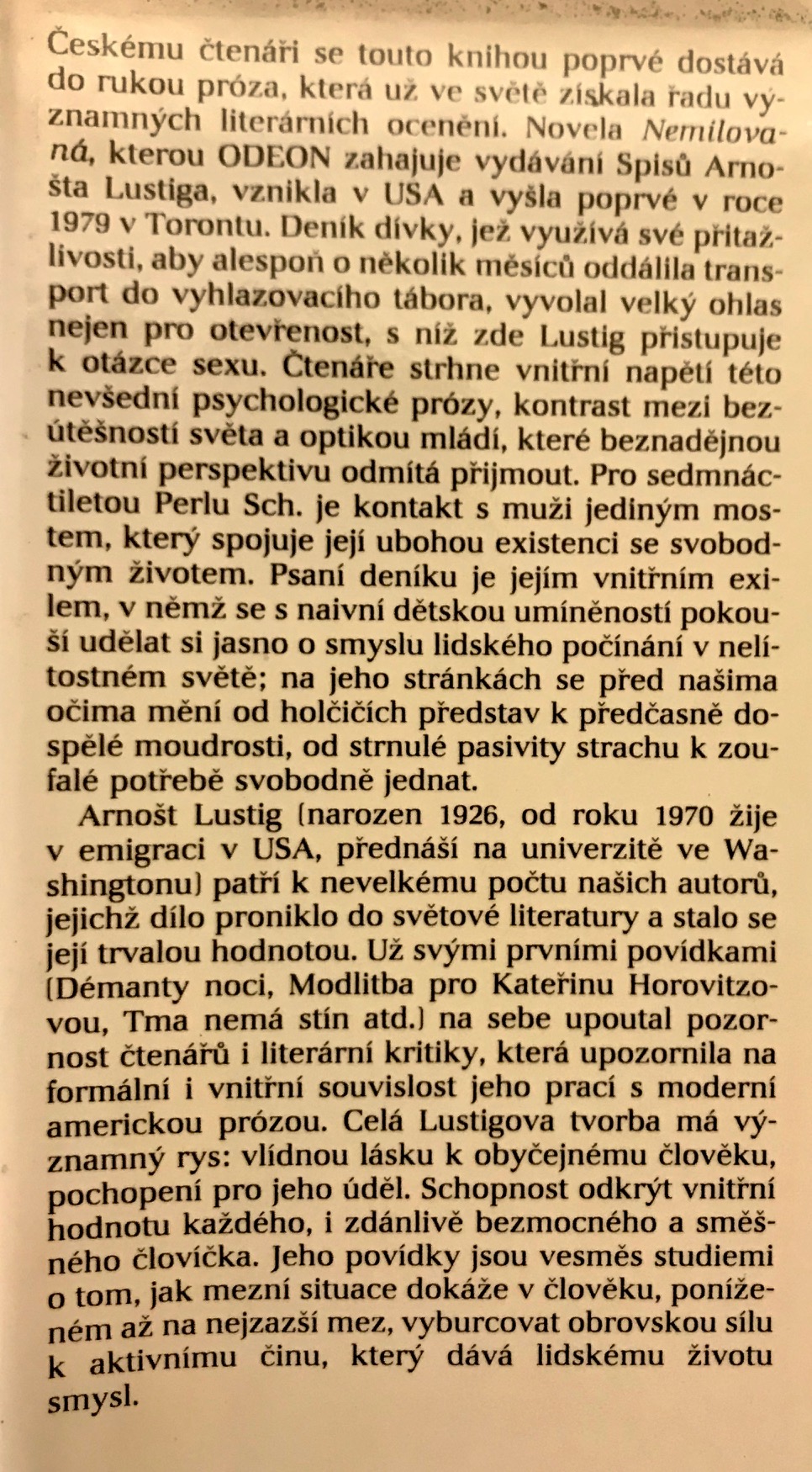 Arnošt Lustig Nemilovaná. (Z denníku sedmnáctileté Pery Sch.) 5,50 € Praha, 1991 Vydavateľstvo Odeon Beletria Nemilovaná. (Z denníku sedmnáctileté Pery Sch.)