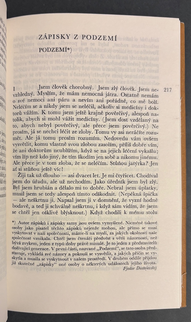 Tento výber prózy predstavuje Dostojevského v jeho koncentrovanej, poviedkovej polohe – tam, kde sa v krátkom rozsahu naplno prejavuje autorova schopnosť preniknúť do temných vrstiev ľudskej psychiky. Výber zahŕňa známe aj menej frekventované texty, v ktorých sa objavujú typické dostojevskijovské motívy: vina, poníženie, morálny rozpor, irónia i grotesknosť každodenného života. Poviedky ako Zápisky z podzemí, Bobek či Sen směšného člověka tvoria myšlienkovo hutné jadro knihy a zároveň ponúkajú čitateľovi vstupnú bránu k autorovej veľkej románovej tvorbe. Odporúčame pre zberateľov a čitateľov Dostojevského, milovníkov psychologickej a existenciálnej prózy v komornej poviedkovej forme.-