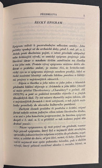 Výber zo slávnej Gréckej antológie prináša stovky drobných epigramov zachytávajúcich každodenný život starého Grécka – lásku, hostiny, hry, umenie, bohov, smrť aj jemný humor. Namiesto veľkých eposov tu vystupujú krátke, presné verše, ktoré pôsobia prekvapivo moderne a civilne. Intímny a živý pohľad na antiku bez mýtických póz, priamo hlasmi jej obyvateľov.- Vydanie dopĺňa rozsiahly poznámkový aparát a viac než dvadsaťstranový prehľad vlastných mien z textu, vďaka čomu má kniha aj charakter seriózneho historického a filologického prameňa. Odporúčame aj ako dar pre milovníkov antiky, poézie a histórie každodennosti, zberateľov edície Antická knižnica aj čitateľov, ktorí majú radi krátke, múdre a prekvapivo moderné texty