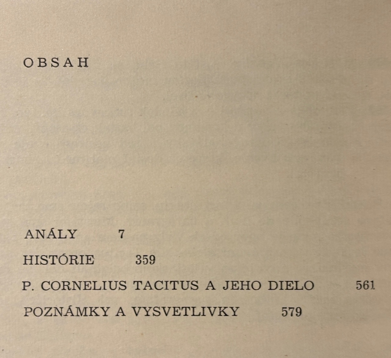 Jedno z najvýznamnejších diel rímskej historiografie, v ktorom Tacitus sleduje osudy Rímskej ríše po smrti cisára Augusta – obdobie plné mocenských bojov, intríg, udavačstva a postupného úpadku republikánskych slobôd. Autor s presnosťou senátora a talentom rozprávača odhaľuje zákulisie cisárskej politiky tak plasticky, že text miestami pôsobí skôr ako historický román než kronika. Odporúčame pre milovníkov histórie, politiky a veľkých príbehov starého Ríma, ktorí si radšej večer prečítajú pád cisárov než zapnú správy.- Ed. Svetoví klasici, zv. 183.- 1. vydanie.- Preklad a doslov Ján Žigo.- Papierová obálka po okrajoch jemne odzobaná, inak pekný stav