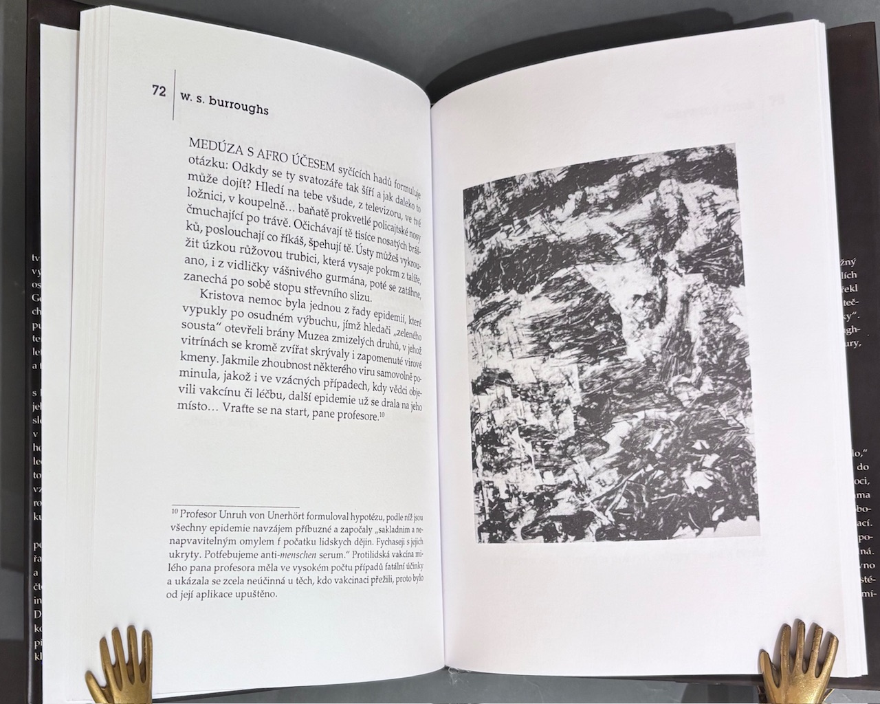 1. české vydanie kultovej prózy W. S. Burroughsa (1914 – 1997, jednej z najvýraznejších osobností americkej beat generation a experimentálnej literatúry 20. storočia) - text zostavený z fragmentov, rozhovorov, esejí a autobiografických poznámok, ktorý odhaľuje autorovu osobnú mytológiu, obsesie i jeho slávnu „cut-up“ techniku. Burroughs tu reflektuje smrť svojej manželky Joan, skúsenosti s drogami a temné stránky ľudskej existencie. Ide o dokument literárneho i osobného experimentu, pre ktorý sa Burroughs stal jednou z ikon undergroundovej a kontrakultúrnej scény.- 1. vydanie.- Preklad Martin Konvička.- ČB ILU.- Pekný stav