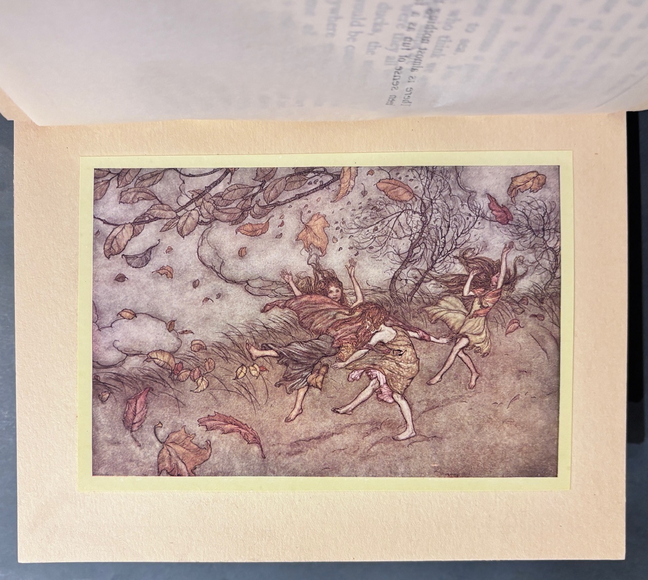 Arthur Rackham (1867–1939) was one of the foremost British illustrators of the late Victorian and Edwardian period, celebrated as a leading figure of the “Golden Age of Book Illustration.” His distinctive combination of delicate line work, subtle colouring, and whimsical fantasy made his art instantly recognizable. Among his best-known works are Alice’s Adventures in Wonderland, A Midsummer Night’s Dream, Grimm’s Fairy Tales, and The Wind in the Willows. His illustrations for Peter Pan in Kensington Gardens (1906) are considered masterpieces of early 20th-century book art and a defining visual interpretation of Barrie’s timeless story.
