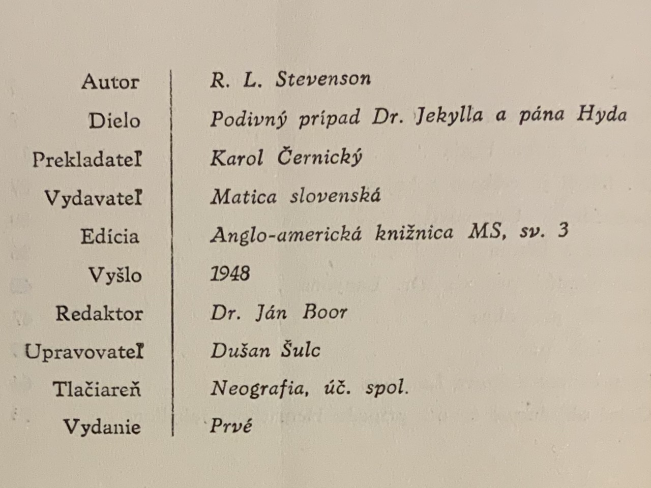 Podivný prípad Dr. Jekylla a pána Hyda - 1. VYDANIE