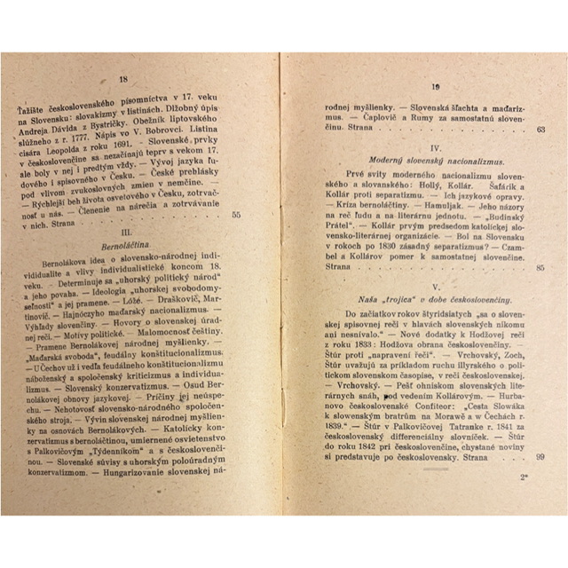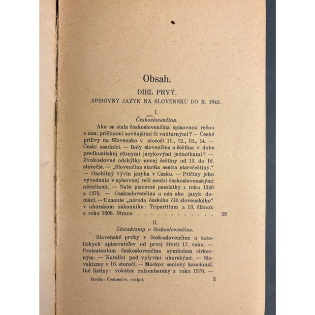 Jedna z najzaujímavejších intelektuálnych kníh raného Československa. V tomto rozsiahlejšom historickom eseji analyzuje Hodža vznik a vývoj jazykového a kultúrneho napätia medzi českým a slovenským prostredím. Autor sleduje vývoj od stredovekej „českoslovenčiny“ cez bernolákovskú reformu až po štúrovské kodifikovanie slovenčiny a polemiky, ktoré rozdelili slovenskú intelektuálnu scénu v 19. storočí.