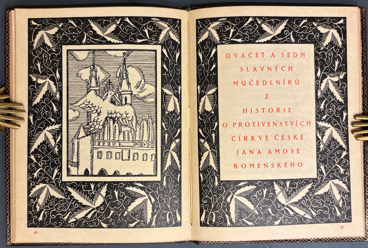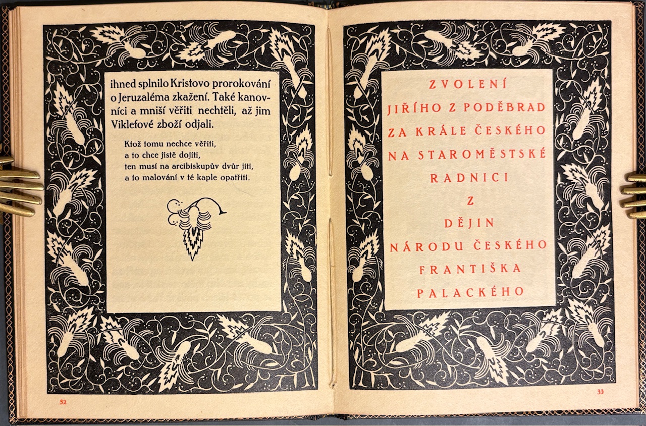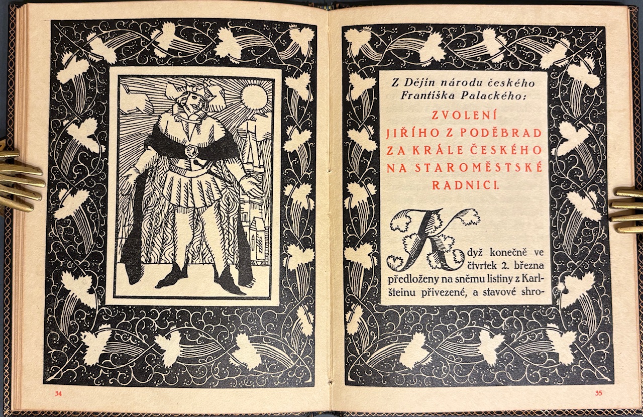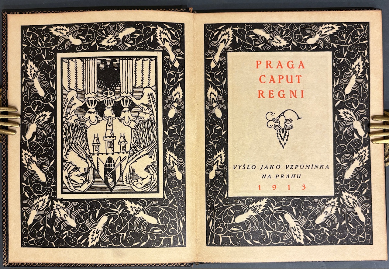Ed. Spolku českých bibliofilú v Praze, kniha 5.- Této knize dostalo se první ceny v soutěži Umělecko-prúmyslového musea Obchodní a živnostenské komory v Praze.- Vybral a upravil František Kysela a V. Vojtíšek.- Celkovo vyšlo 1000 exemplárov, z toho 500 číslovaných a signovaných Fr. Kyselom, náš exemplár má č. 40.- Na predsádke malé ex libris.- Zlatoriezka, na väzbe ozdobný vnútorný okrajový a hranový pásik, tmavomodrá kožená väzba.- Konce chrbáta a dolný roh prednej dosky len minimálne ošúchané, inak výborný stav