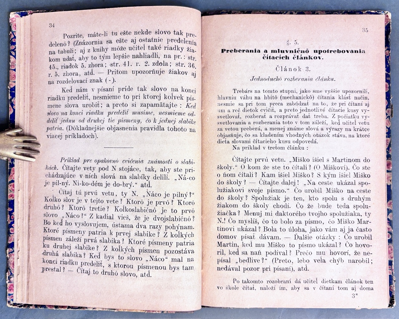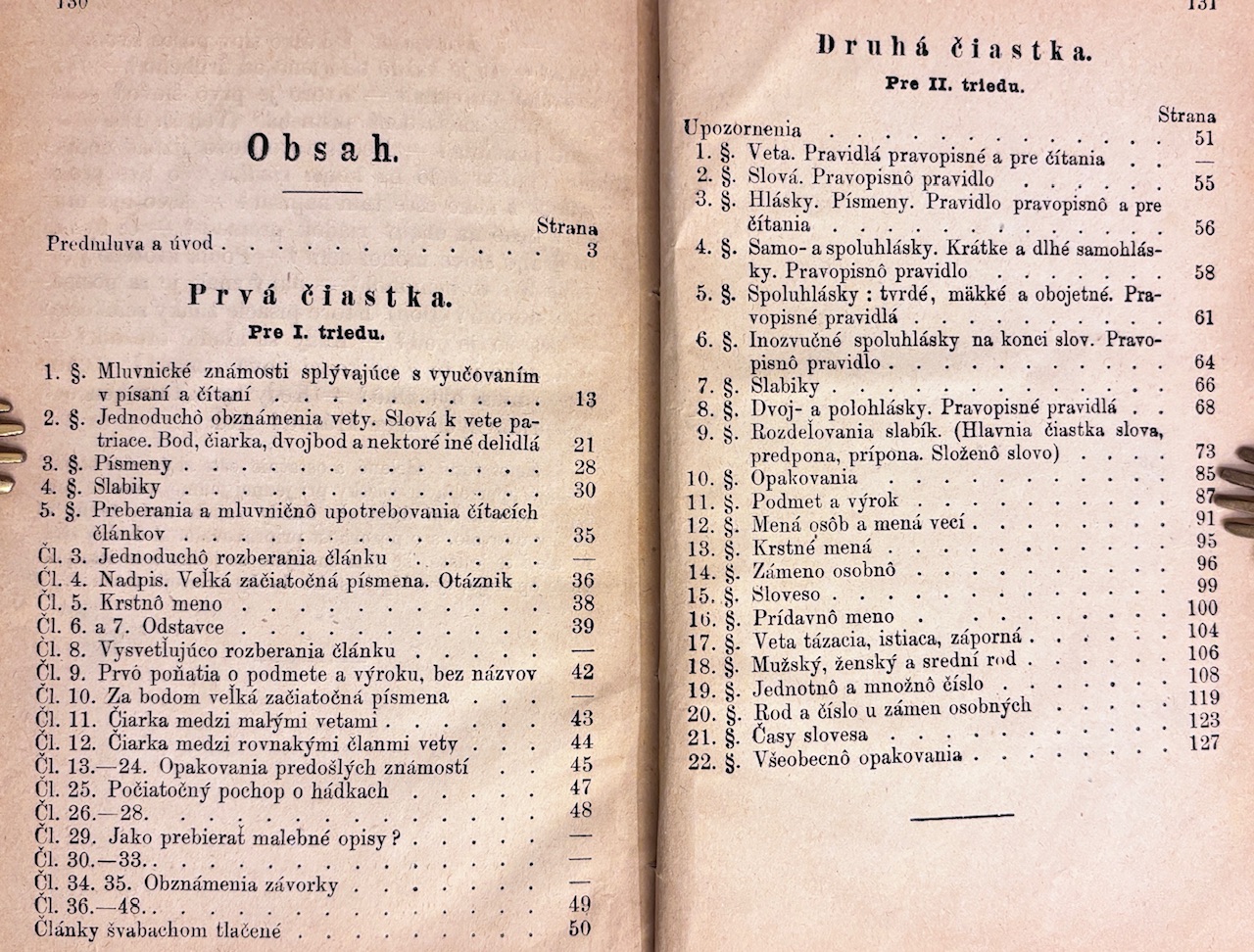 Didaktická príručka určená pre vyučovanie slovenského jazyka na ľudových (pospolitých) školách v Uhorsku. Text vznikol „dľa súmennej, kr. uh. ministrom verejnej výučby odmenenej maďarskej knižky“ od Lászlóa Nagya, pričom Gabriel Zaymus ju adaptoval do slovenského prostredia na základe poverenia uhorského ministerstva školstva. Publikácia predstavuje významný dokument o ranom štádiu jazykového a školského štandardizovania slovenského jazyka po rakúsko-uhorskom vyrovnaní (1867), v období tzv. maďarizačného školstva.- Dobová poloplátená väzba.- Predná doska trochu uvoľnená, väzba ošúchaná, zvyšky starého (knižničného) štítku, na prvých stranách príležitostne podčiarknutý text, papier trochu zhnednutý
