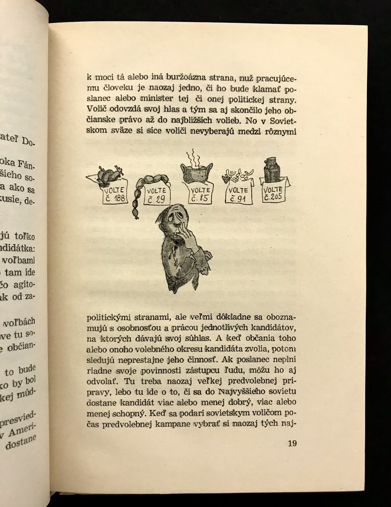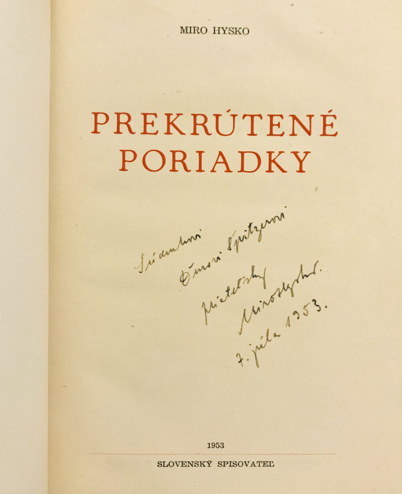 Prvé vydanie satirických súdružských poviedok s venovaním autora:" Súdruhovi Ďurovi Špitzerovi priateľsky Miro Hysko. 7. JULA 1953".- Edícia Pôvodná tvorba, zv. 28.- ILU v texte V. Kubas.- Dobrý stav