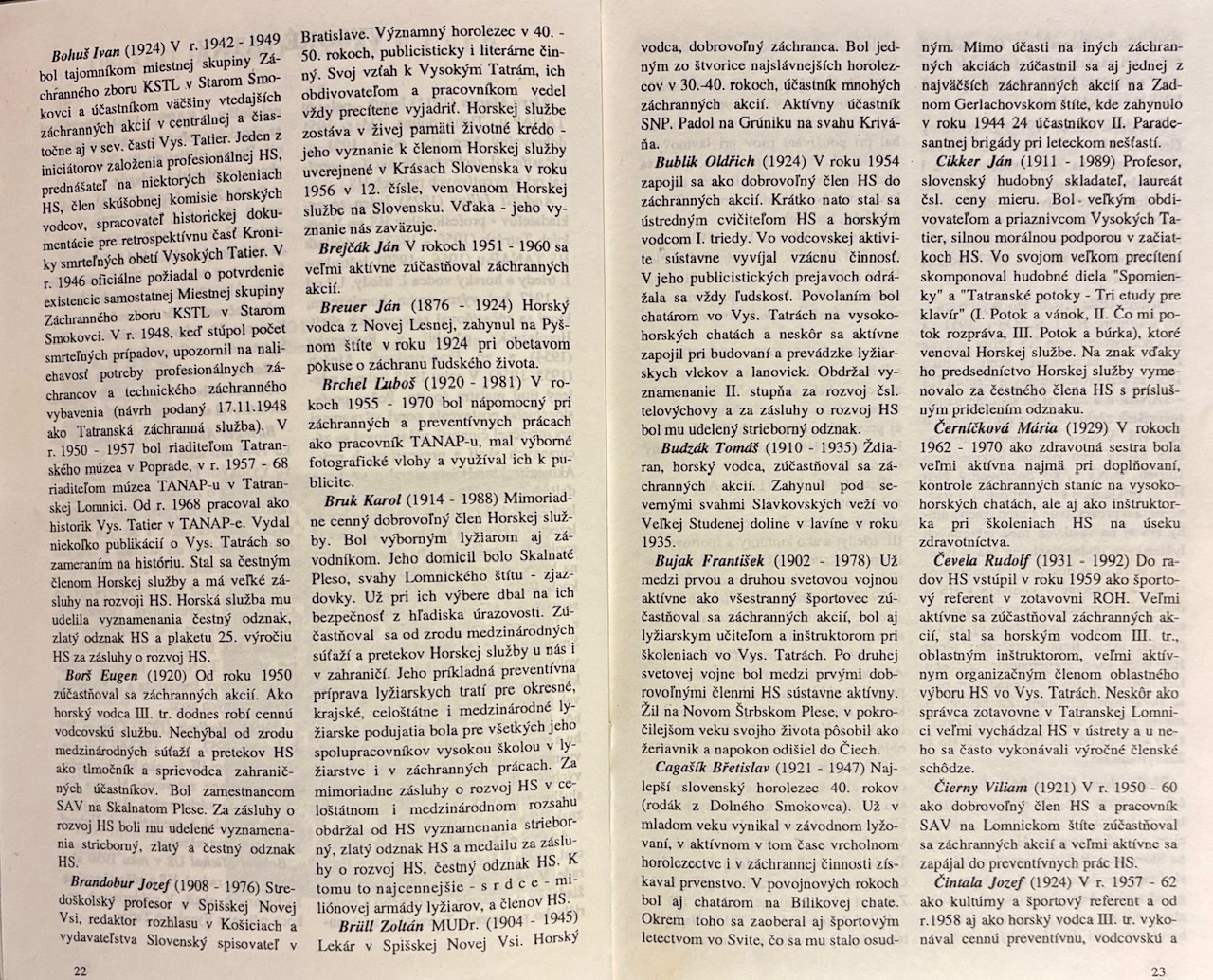 Publikácia dokumentuje vznik a prvé desaťročia organizovanej horskej služby na Slovensku, venovaná najmä Tatrám, pionierom záchranárskych techník a vývoju výstroja. Obsahuje historické fotografie, autentické spomienky, mená zakladateľov, opis prvých zásahov, vývoj lanových techník a používaných nosidiel. Ide o dôležité regionálne i športovo-historické dielo s muzeálnou hodnotou pre horských záchranárov a turistickú komunitu.- 1. vydanie.- Bohatá ČB fotografická príloha.- Dobrý stav