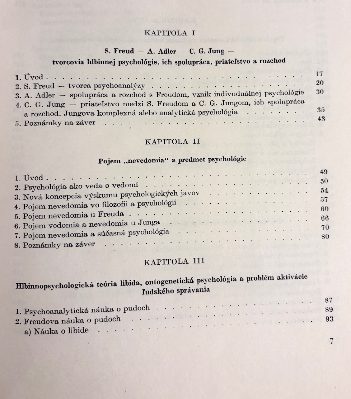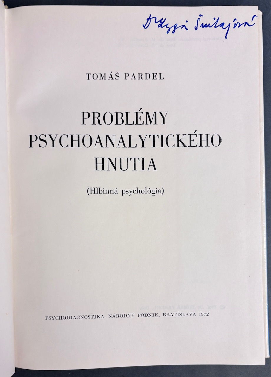 Dielo sa zaoberá teoretickými a metodologickými otázkami psychoanalytického smeru v psychológii. Pardel analyzuje základné problémy a rozpory psychoanalytického hnutia v širšom kontexte psychologických teórií a filozofických prístupov. Text reflektuje vzťah medzi klasickou Freudovou psychoanalýzou a jej neskoršími školami, vrátane neofreudizmu, jungiánskej analytickej psychológie a existenciálne orientovaných prístupov.- Súkr. podpis na titulnom liste a poslednej strane. Papierová obálka po okrajoch len minimálne ošúchaná, inak dobrý stav