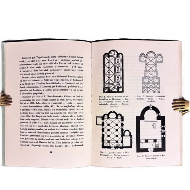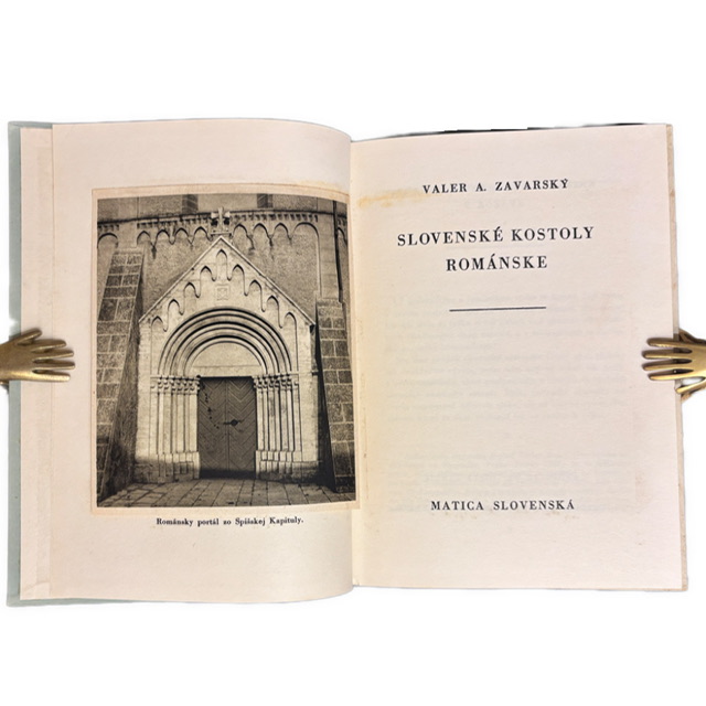 ZAUJÍMAVOSŤ: Publikácia vyšla v období Slovenského štátu, keď sa systematicky podporovalo vydávanie diel prezentujúcich slovenské kultúrne a historické hodnoty. Architektúra, sakrálne pamiatky a národné dedičstvo boli chápané ako dôkaz kontinuity a kultúrnej vyspelosti krajiny. Aj preto tieto malé matičné zväzky dnes pôsobia ako dokument doby – nielen obsahom, ale aj samotným vydavateľským gestom. Na zadnej doske sa navyše nachádza dobová cenová pečiatka Povereníctva Slovenskej národnej rady pre výživu a zásobovanie so zľavou 25 %, pravdepodobne súvisiaca s povojnovou cenovou reguláciou a korekciou meny pri redistribúcii knižných zásob