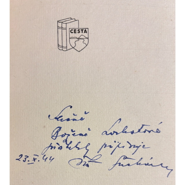 ZAUJÍMAVOSŤ: Kniha vyšla v októbri 1944, teda v období silného vojnového tlaku a obmedzení – aj preto majú podobné drobné tlače často komornejší rozsah, no o to väčší dôraz na výtvarnú a typografickú kvalitu.