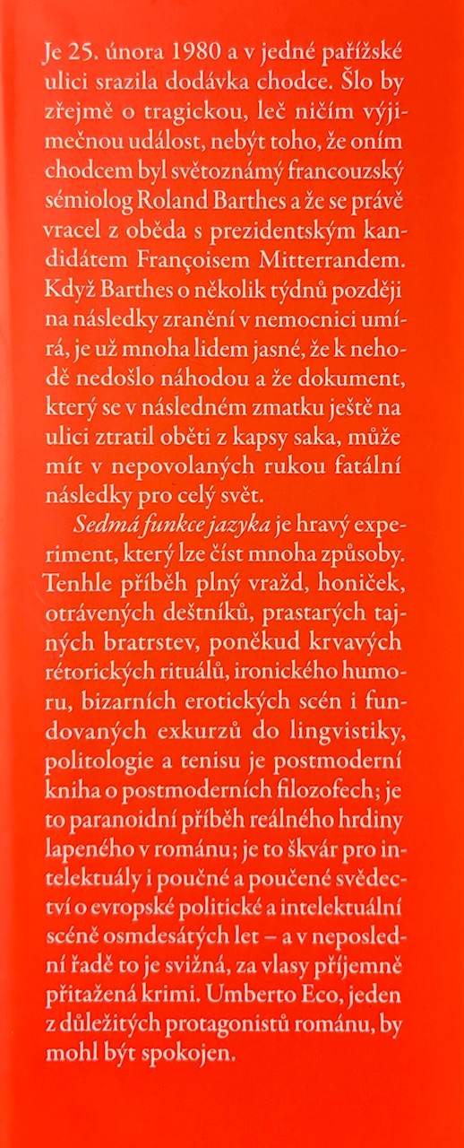 Laurent Binet Sedmá funkce jazyka 14,00 € Praha, 2017 Vydavateľstvo Argo Detektívky Sedmá funkce jazyka
