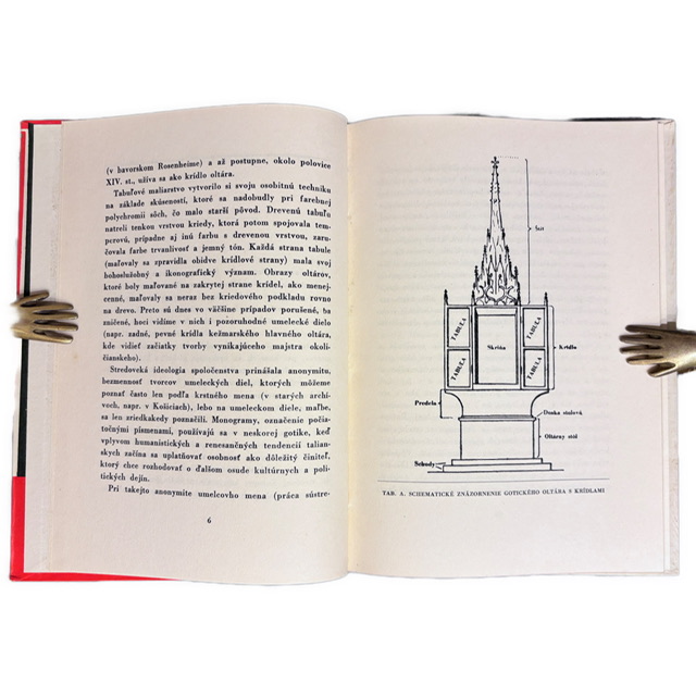 ZAUJÍMAVOSŤ: Vojnové vydanie z roku 1942 nesie typickú typografiu a grafický jazyk obdobia Slovenského štátu. Ide o jeden z prvých ucelenejších pokusov o odborné spracovanie gotického maliarstva na Slovensku. Na zadnej doske sa nachádza dobová cenová pečiatka Povereníctva Slovenskej národnej rady pre výživu a zásobovanie so zľavou 25 %, pravdepodobne súvisiaca s povojnovou cenovou reguláciou a korekciou meny pri redistribúcii knižných zásob