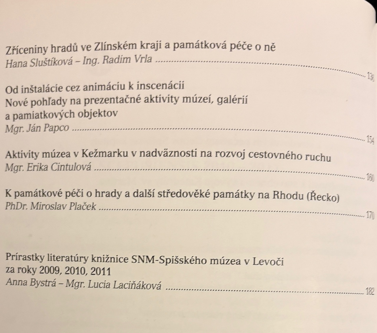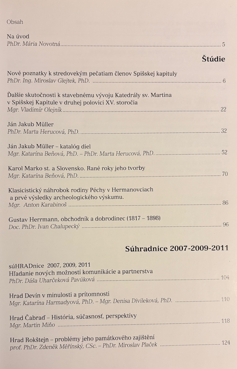 Zborník štúdií, ktoré mapujú nové poznatky z architektonických výskumov, zo života a tvorby spišských umelcov 19. storočia i poznatky z dokladov, ktoré sa spájajú s históriou Spišskej Kapituly. V druhej časti publikácie sú viaceré príspevky zo skúseností z praktických činností spojených so správou hradov a zámkov na Slovensku i v zahraničí.- Farebné foto.- Dobrý stav