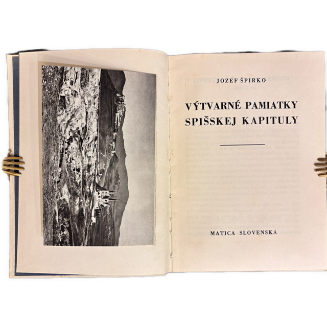 ZAUJÍMAVOSŤ: Vydané Maticou slovenskou v období Slovenského štátu, keď sa systematicky publikovali diela predstavujúce slovenské kultúrne a historické hodnoty. Sakrálne pamiatky a významné lokality boli prezentované ako dôkaz historickej kontinuity a kultúrnej identity krajiny. Tieto malé matičné zväzky dnes tvoria vyhľadávaný zberateľský segment – nielen obsahom, ale aj dobovým kontextom vydania. Na zadnej doske sa navyše nachádza dobová cenová pečiatka Povereníctva Slovenskej národnej rady pre výživu a zásobovanie so zľavou 25 %, pravdepodobne súvisiaca s povojnovou cenovou reguláciou a korekciou meny pri redistribúcii knižných zásob
