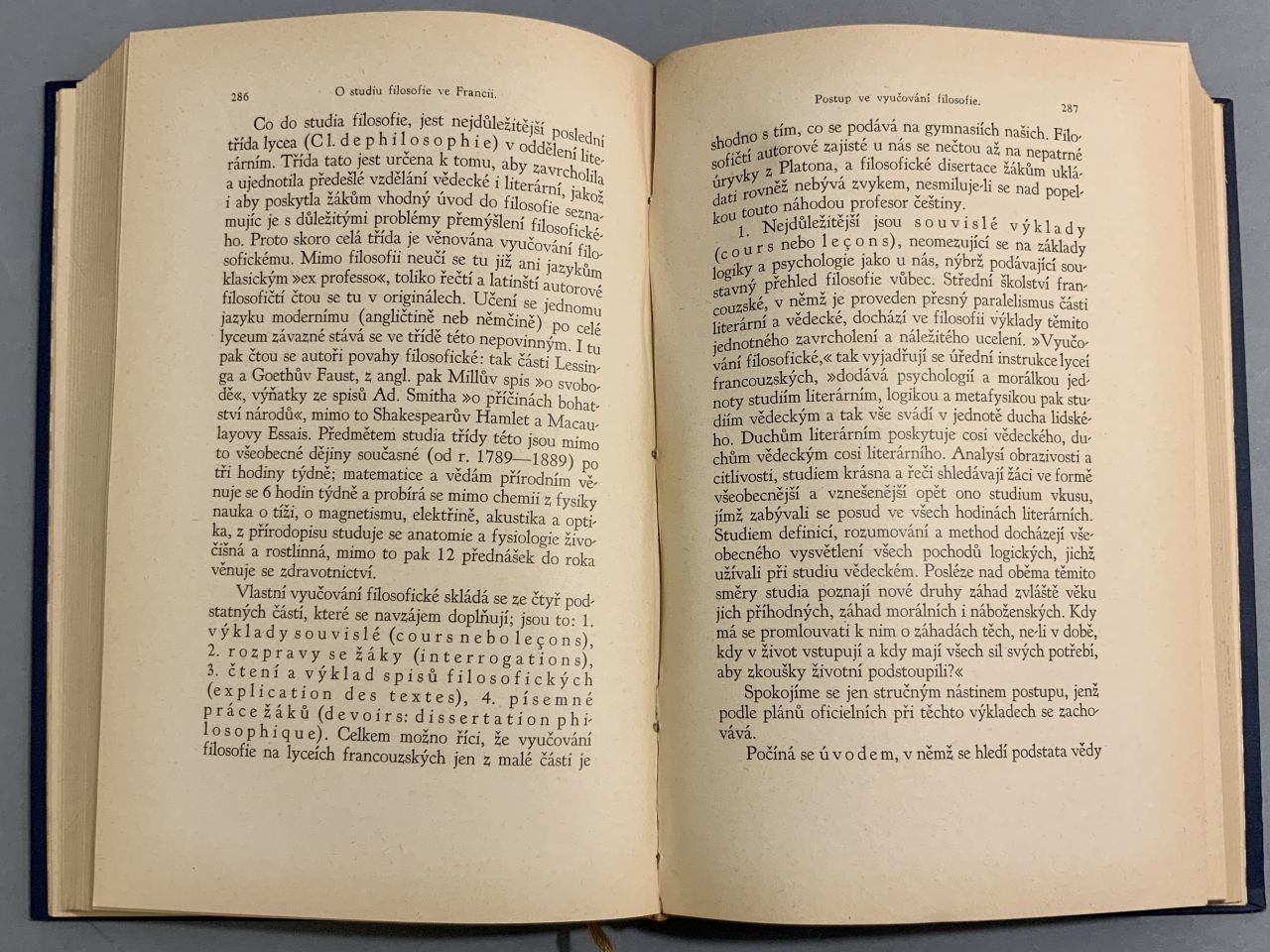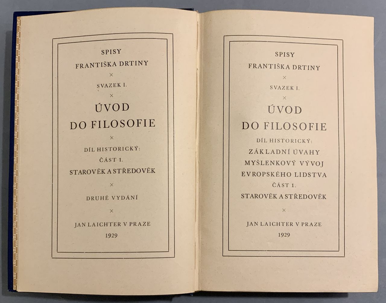 Zväzok I.: 2. vydanie.- Úvod do filozofie. Základní úvahy myšlenkový vývoj evropského lidstva. Starověk a Středověk.- Plátená väzba, pekný stav.- Zväzok II.: Úvod do filozofie. Myšlenkový vývoj evropského lidstva. Nová doba.- Brožovaná väzba, obálka opravovaná, na predsádke súkromný podpis.- Zväzok III.: Ideály výchovy. Soubor programových a historických statí z pedagogiky.- Plátená väzba, pekný stav