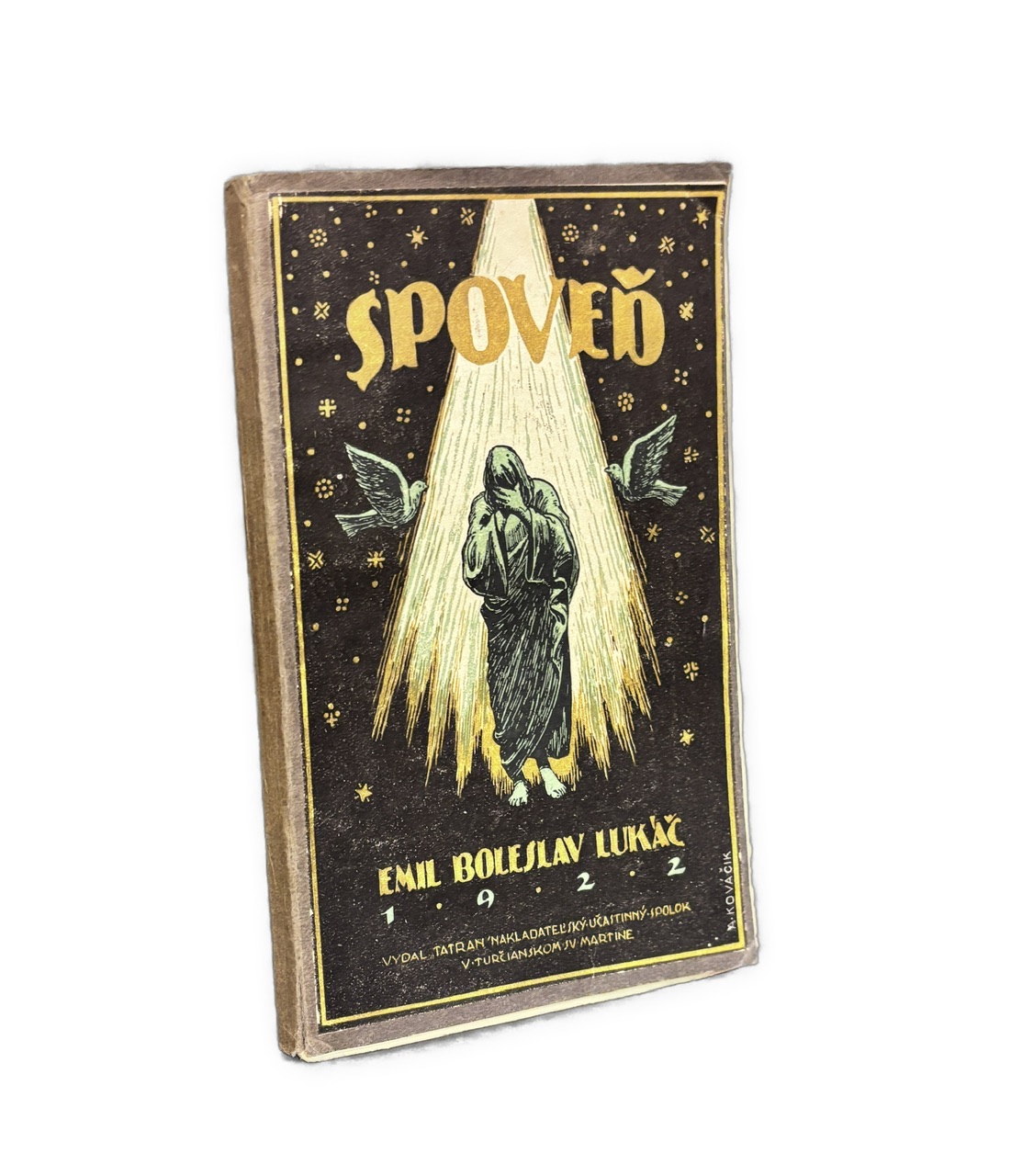 Obálka je dielom výtvarníka a ilustrátora Andreja Kováčika (1889-1953). Zaujmavo ňom píše Ľ. Longauer: https://100.scd.sk/detail/842_Andrej-Kovacik 1. vydanie.- Frontispice s fotografiou E.B. Lukáča s pôvodným pauzákovým ochranným papierom.- Dolný vonkajší roh zadnej obálky s jemnými stopami po prehnutí, inak dobrý stav