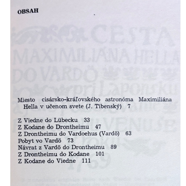 Autentický cestovný denník cisársko-kráľovského astronóma Maximiliána Hella, štiavnického rodáka, ktorý sa v roku 1769 vydal na ďaleký sever Európy, aby vo Vardö pozoroval prechod Venuše cez slnečný kotúč – jednu z najvýznamnejších vedeckých udalostí 18. storočia. Hellova expedícia viedla cez Prahu, Drážďany, Lipsko, Hamburg, Lübeck, Kodaň a Trondheim až do arktického Vardö. Denník zachytáva nielen vedecké merania, ale aj náročné cestovanie, budovanie observatória, stretnutia s miestnymi obyvateľmi a atmosféru severu na konci 18. storočia. Výpočty slnečnej paralaxy, ktoré Hell spracoval, významne prispeli k určeniu vzdialenosti Zeme od Slnka. Výprava štiavnického astronóma bola vtedajším „vesmírnym projektom“ svojej doby. Odporúčame Štiavničanom a každému, čo si potrpí na významnyćh slovenských rodákov, záujemcom o dejiny vedy, astronómiu a zberateľom kvalitných slovenských edícií