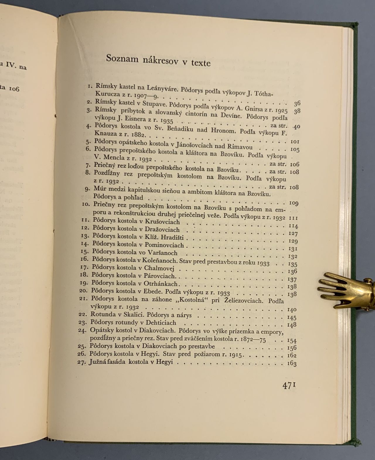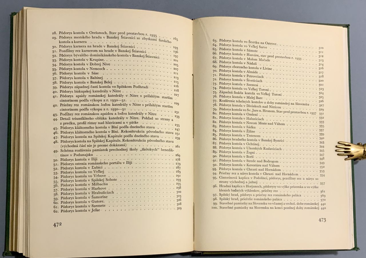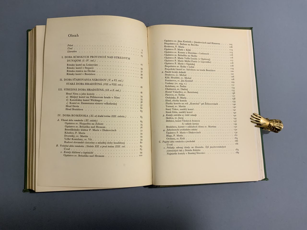 Kniha prvá: Stavebné umenie na Slovensku od najstarších čias až do konca doby románskej.- Bohato ilustrované. Pôvodná ilustrovaná obálka voviazaná. Bez titulného listu.- Dobová plátená preväzba, predná doska s fliačkami, vnútri pekný stav