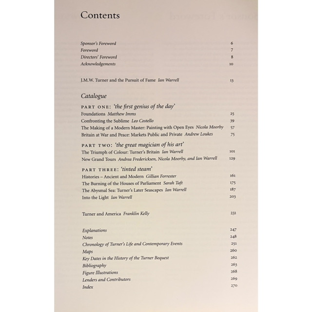 Publikácia vznikla pri príležitosti významnej medzinárodnej výstavy a prináša rozsiahly katalóg Turnerových diel spolu s odbornými štúdiami o jeho tvorbe, technike a umeleckom vývoji. Reprodukcie obrazov dopĺňajú historické komentáre a analýzy, ktoré približujú Turnerovu cestu od klasickej krajinomaľby k maliarskemu jazyku, ktorý predznamenal impresionizmus.