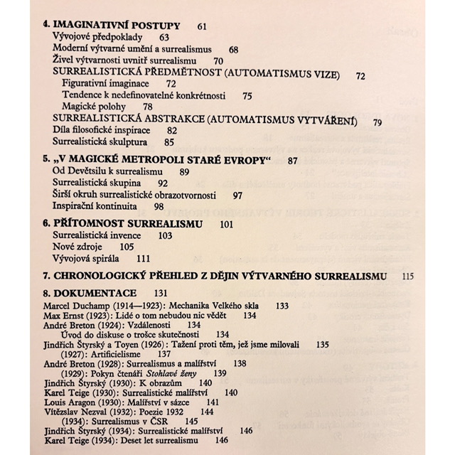 Jeden z najucelenejších českých prehľadov výtvarného surrealizmu. Kniha nesleduje len dejiny smeru, ale aj jeho vnútornú logiku, metódy, imaginatívne postupy a prepojenia medzi obrazom, básnickou inšpiráciou, objektom a psychickou skúsenosťou. Popri výklade prináša aj dokumentárny materiál a bohatý obrazový sprievod, vďaka čomu funguje zároveň ako teoretická práca, pramenná kniha aj vizuálne silná publikácia o surrealizme v európskom kontexte.