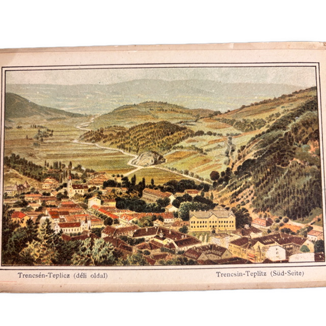 ZAUJÍMAVOSŤ: Kúpele Trenčianske Teplice patrili v rámci monarchie medzi najprestížnejšie sírne kúpele a boli spravované aristokratickou správou (Gräflich d’Harcourt’sche Bade-Direction). Album priamo uvádza aj ceny pobytu – napríklad kompletnú kúpeľnú starostlivosť už za 3 florény denne, čo je dnes cenný doklad dobového turizmu a kúpeľnej kultúry.
