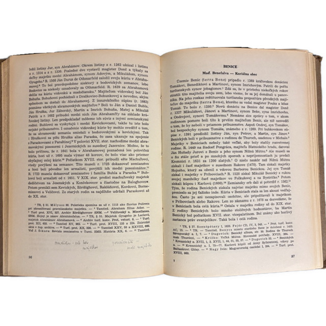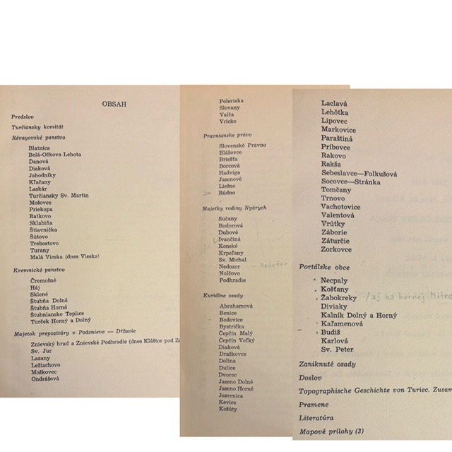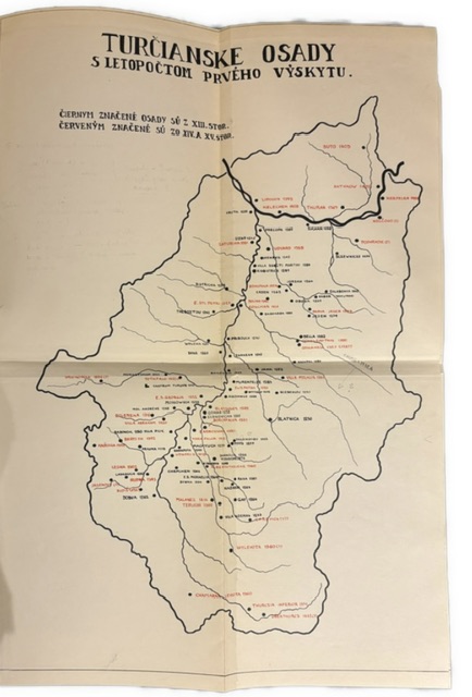 ZAUJÍMAVOSŤ: Tento exemplár pochádza z knižnice slovenského jazykovedca Jána Tvrdoňa. V knihe sa zachovali jeho jemné ceruzkové marginálie a vložené výstrižky z regionálnej tlače venované dejinám Turca a Sklabinského hradu, čo naznačuje, že publikácia slúžila ako pracovný materiál pri historickom a jazykovednom výskume. Na improvizovanom titulnom liste (pôvodný chýba) je vlastnoručný podpis Jána Tvrdoňa.-