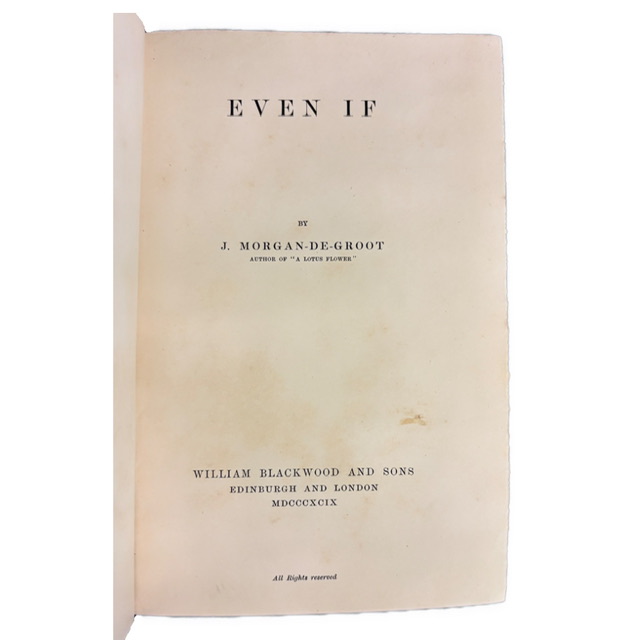 Psychologický román z konca 19. storočia od autorky známej aj titulom A Lotus Flower. Vydanie prestížneho britského vydavateľstva William Blackwood & Sons. Typická neskoroviktoriánska próza s dôrazom na vnútorný svet postáv, morálne dilemy a spoločenské napätie. Na konci zachovaný niekoľkostranový vydavateľský katalóg a zoznam diel autorky.
