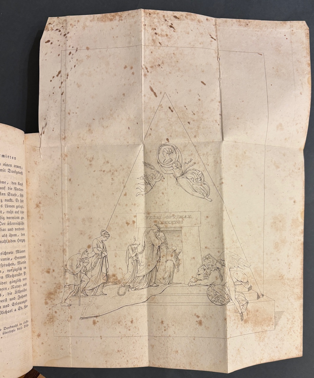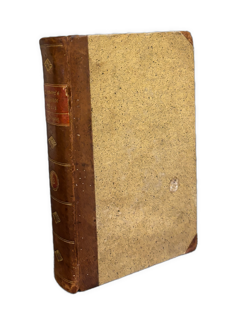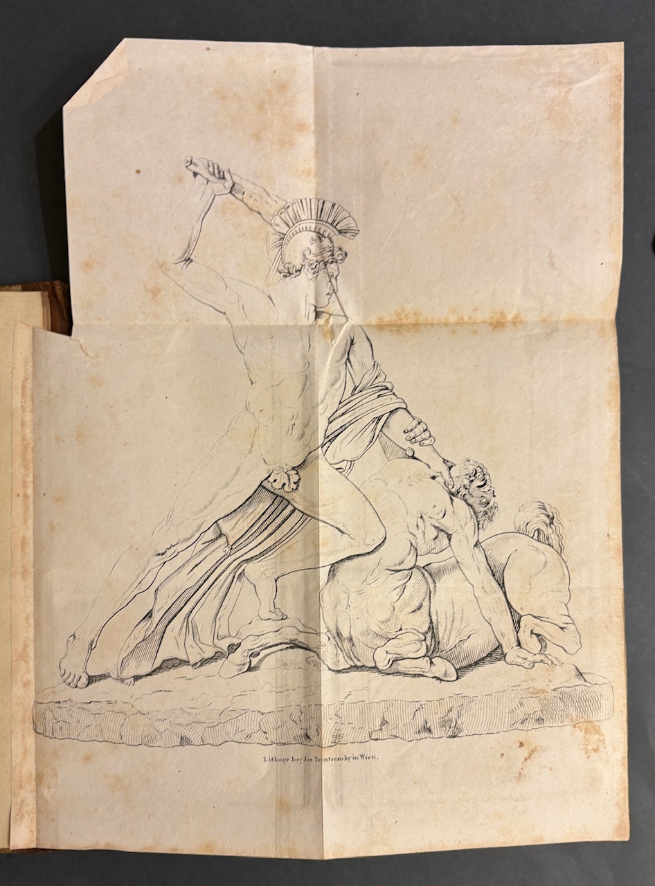 Ausführliches historisch-topographisches Werk zur Geschichte Wiens.- Gest. Titelbl., Heft 1 mit 1 gefalt. lithogr. Tafel (braunfleckig), Heft 2 1 gefalt. figürliche und 1 gefalt.architektonische lith. Tafel Plan der Winer Burg im Jahre 1825 (stark braunfleckig).- Seitenanzahl: 201, LXII (Urkundenbuch)., 88, CCLXVI (Urkundenbuch).- Vorsatz mit altem handschr. Eintrag. Zeitgenössischer Halblederband mit braunem Lederrücken und marmorierten Pappdeckeln. Der Rücken ist reich goldgeprägt mit Titel, Jahresangabe und ornamentalen Fileten sowie Bandnummer. Solide Bindung, altersgemäße Kanten- und Rückenberieb, insgesamt gut erhalten