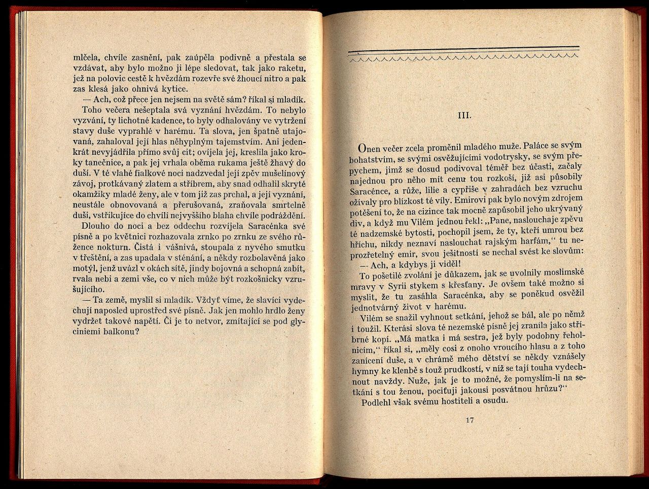 Historický román z dôb križiackych vojen 13. storočia.- Edícia Zahrada krásné prózy 2. zv.- Frontispice Jaroslav Novák.- 1. francúzke vydanie vyšlo 1922 pod originálnym názvom Un jardin sur l’Oronte.