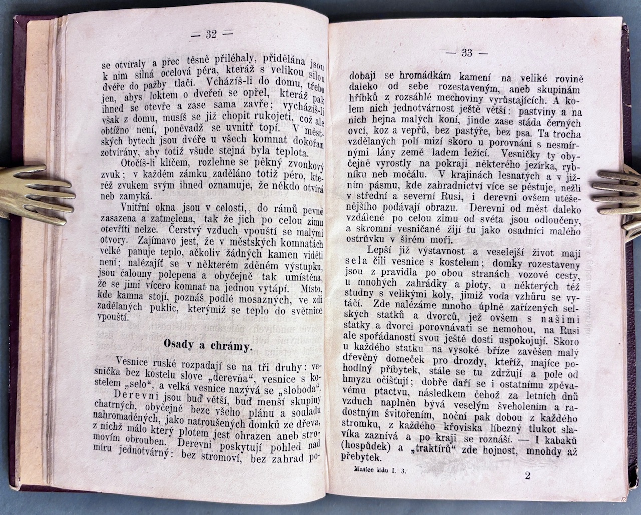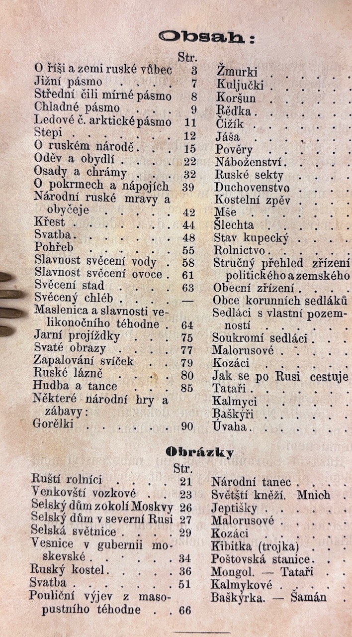 Práca českého cestovateľa a publicistu Serváca Bohdana Hellera prináša pozoruhodný opis života v cárskom Rusku v polovici 19. storočia - geografické pásma, ruské krajiny a národy, tradičné obyčaje, sviatky, odev, náboženstvo i spoločenské vrstvy. Obsahuje kapitoly o každodennom živote – jedle, svadbách, pohreboch, tancoch, vierach, poverách, náboženských sektách i sociálnej štruktúre. Dielo má silne etnografický a popularizačný charakter a bolo určené širokej verejnosti ako dostupné čítanie o „ríši ruskej“.- Ed. Matice lidu, č. 3.- 19 drevorytov.-Dobová polokožená väzba.- Papier jemne zažltnutý, hrany ošúchané, zadný horný roh zadnej dosky zlomený, inak dobrý stav